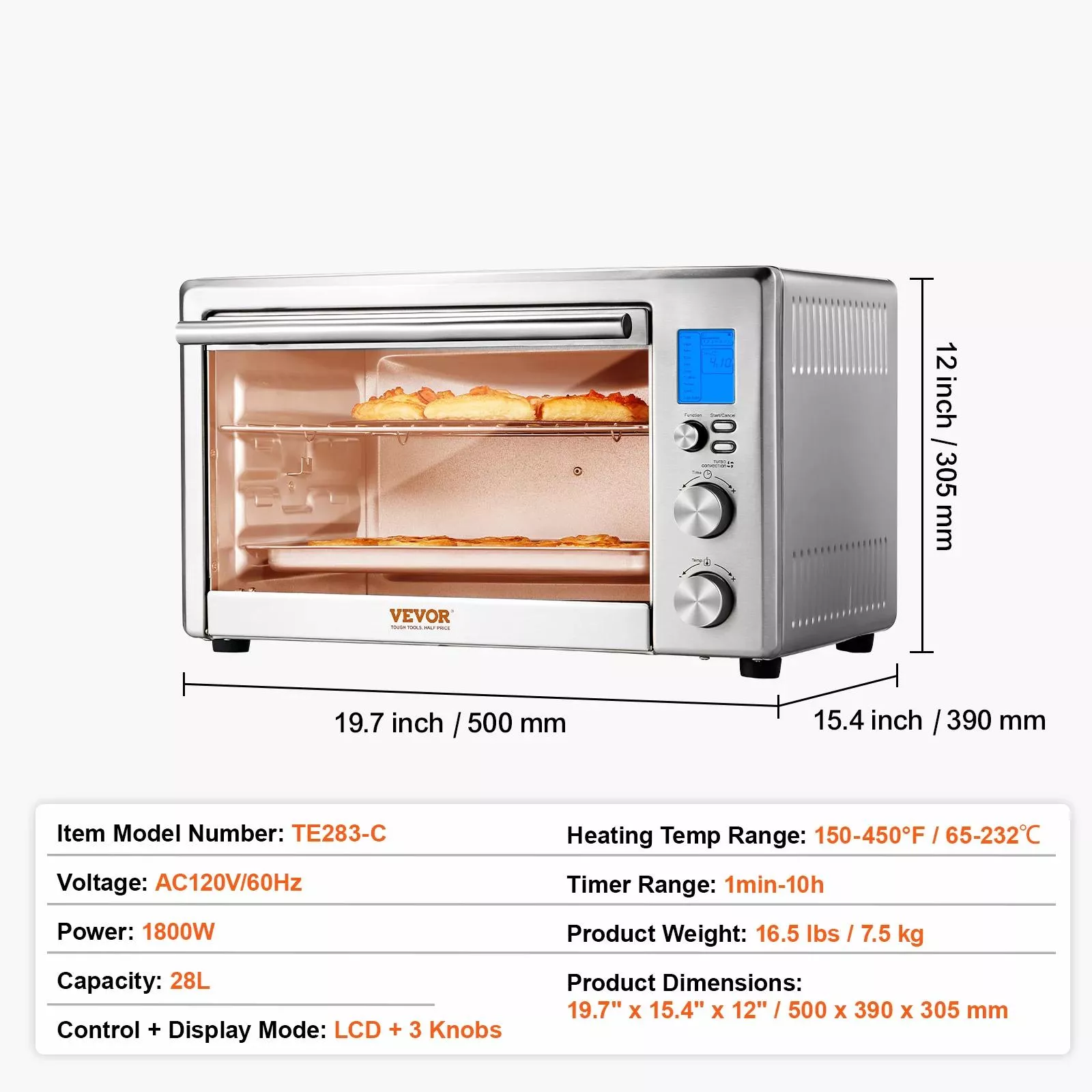 • Feed the Whole Family: Spacious 28L capacity fits a 12-inch pizza, 6 slices of toast, or a whole 2.5 lb chicken.