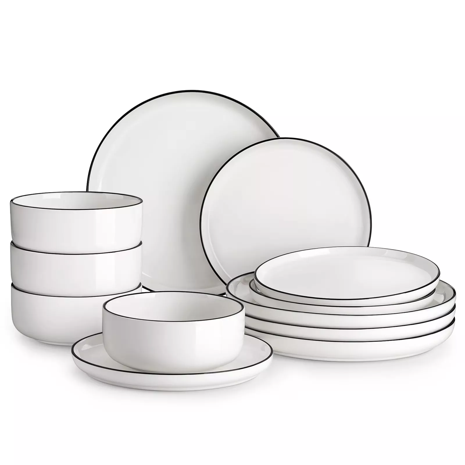 Bring timeless elegance and modern style to your table with this stunning 12-piece porcelain dinnerware set. Designed for both everyday meals and special gatherings, each piece features a sleek black rim that adds a touch of sophistication to any setting. Whether you’re hosting a dinner party or enjoying a quiet meal at home, this set transforms every occasion into something special.