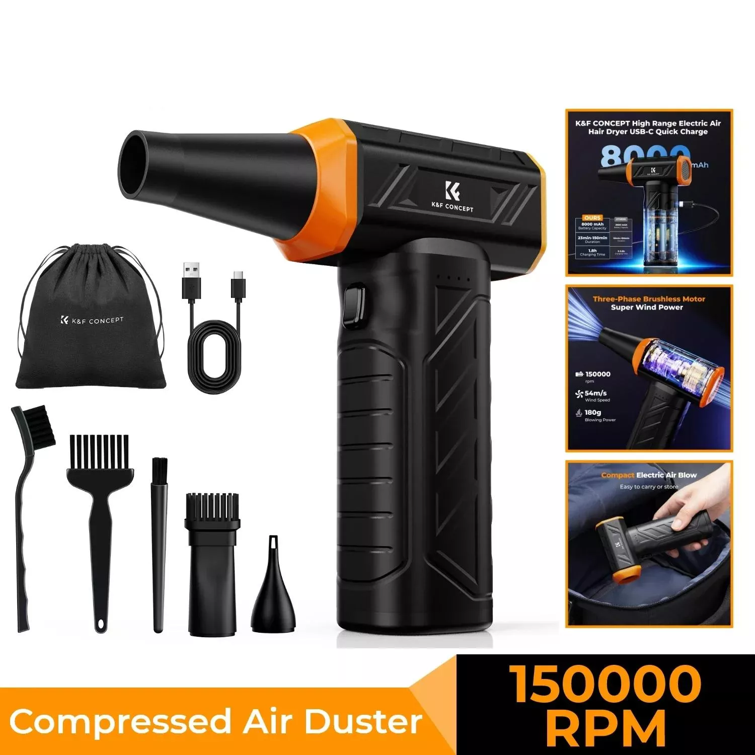 Looking for a fast and eco-friendly way to remove dust from your devices and tight spaces? This 150000RPM Electric Air Duster delivers strong, consistent airflow to blast away debris from computer keyboards, laptops, cameras, gaming consoles, car interiors, and more. Designed as a reusable alternative to disposable compressed air cans, it saves money while providing long-lasting cleaning power. Its cordless design, lightweight feel, and compact size of just 6 x 3 inches make it easy to carry in your pocket or bag for quick cleanups at home, at work, or on the go.