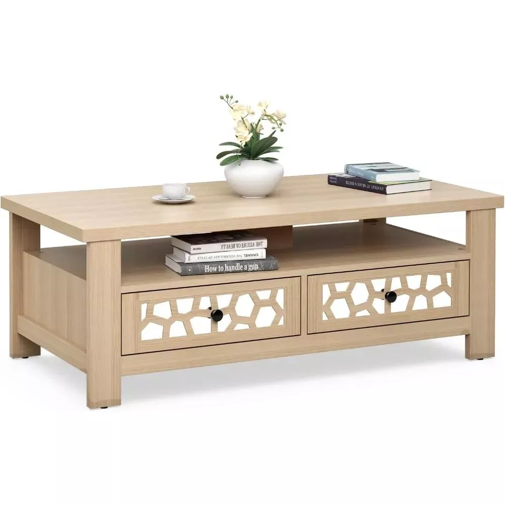 Designed for modern lifestyles, this coffee table features a minimalist silhouette enhanced by natural wood grain details and mirror-accented drawers. Whether you’re hosting guests, enjoying a cozy night in, or just looking for a stylish spot to rest your coffee cup, this table is your go-to for both style and substance.