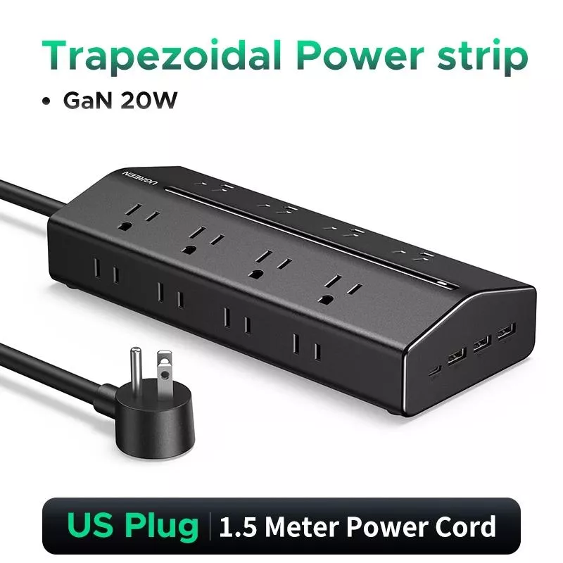 Its innovative 15° tilted trapezoid layout ensures each plug fits comfortably without blocking the next. The hidden-placement design makes it easy to tuck behind furniture, freeing up valuable room and keeping your space clean and organized. The durable 4.3 ft power cord lets you reach distant sockets with ease, making it ideal for living rooms, workstations, gaming setups, and multi-device charging areas.
