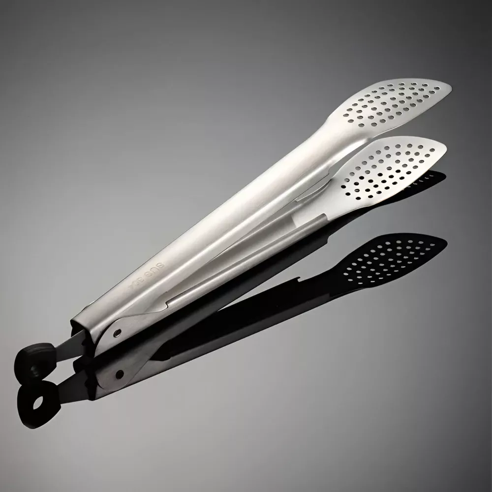 Crafted from premium 304 stainless steel, these tongs are built to last a lifetime. The material is high-temperature resistant, corrosion-proof, and LFGB certified for food safety. The mirror-polished finish adds a touch of elegance, while the silicone tips prevent scratching, sticking, or melting. A built-in tension switch allows you to adjust grip tightness effortlessly, reducing hand strain and enhancing precision — ideal for both home cooks and professional chefs.