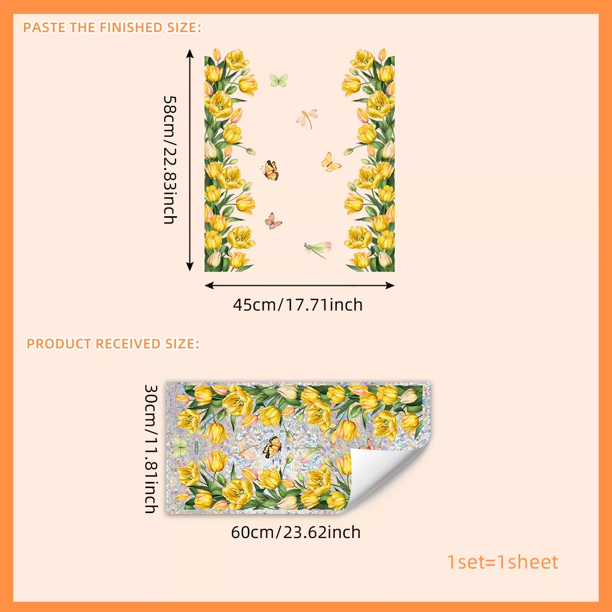 Transform any plain window or glass door into a stunning work of art with this 3D Yellow Flower Stained Glass Decorative Sticker. Designed to capture and reflect sunlight beautifully, this elegant window film adds a touch of charm and warmth to your space. As the sun shines through, the vibrant yellow floral patterns create a mesmerizing dance of colors that instantly brightens your home and mood.