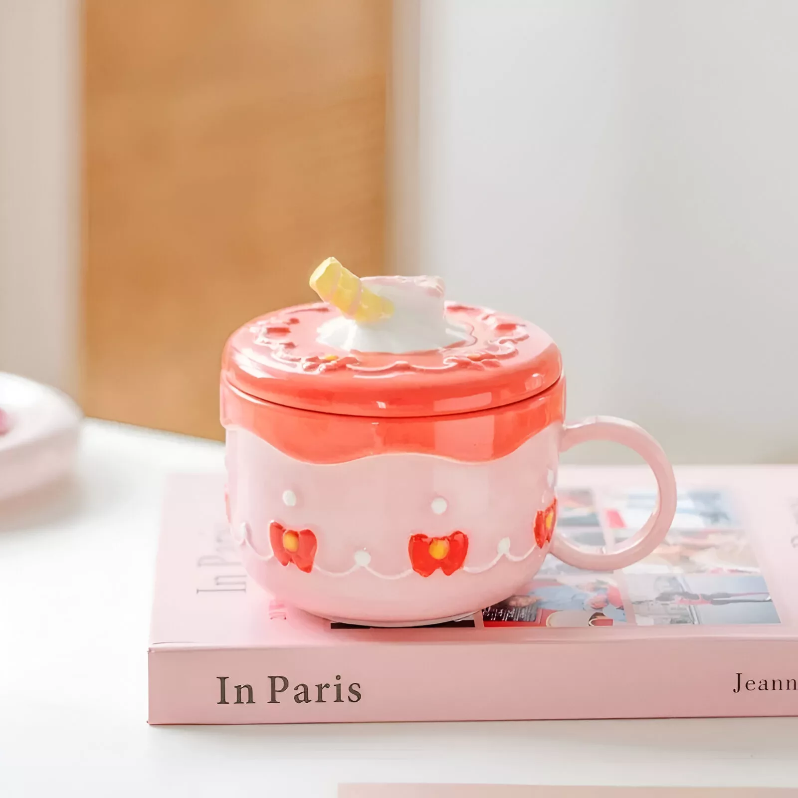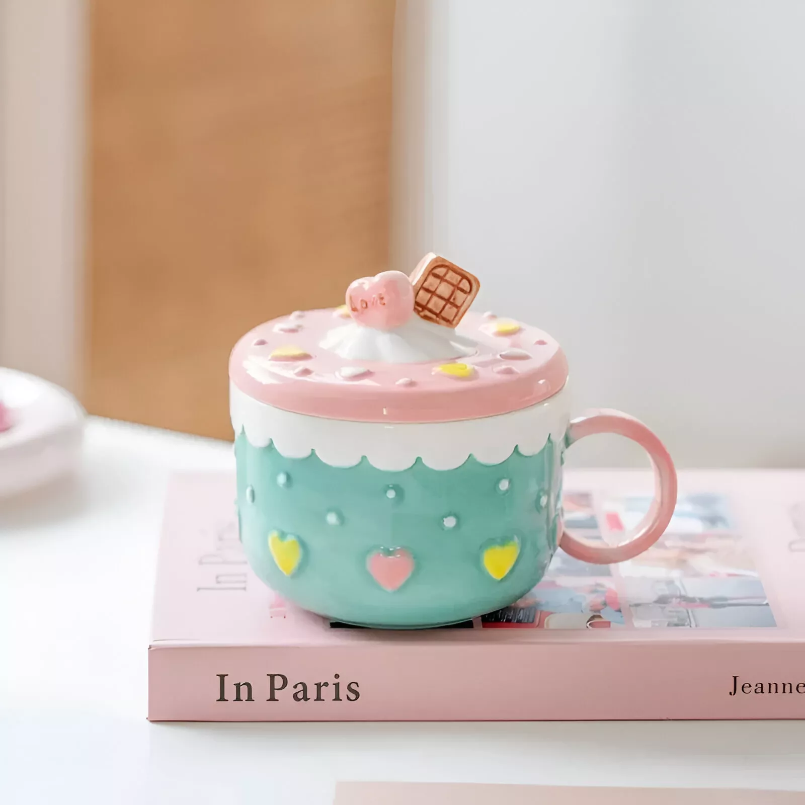 The mug is made from high-quality, eco-friendly ceramic that’s both durable and safe. The embossed cake design not only looks delightful but also adds a textured grip, making it easy and comfortable to hold. The matching ceramic lid helps keep your drink warm longer and doubles as a dust cover, making it ideal for busy desks or cozy mornings on the sofa.