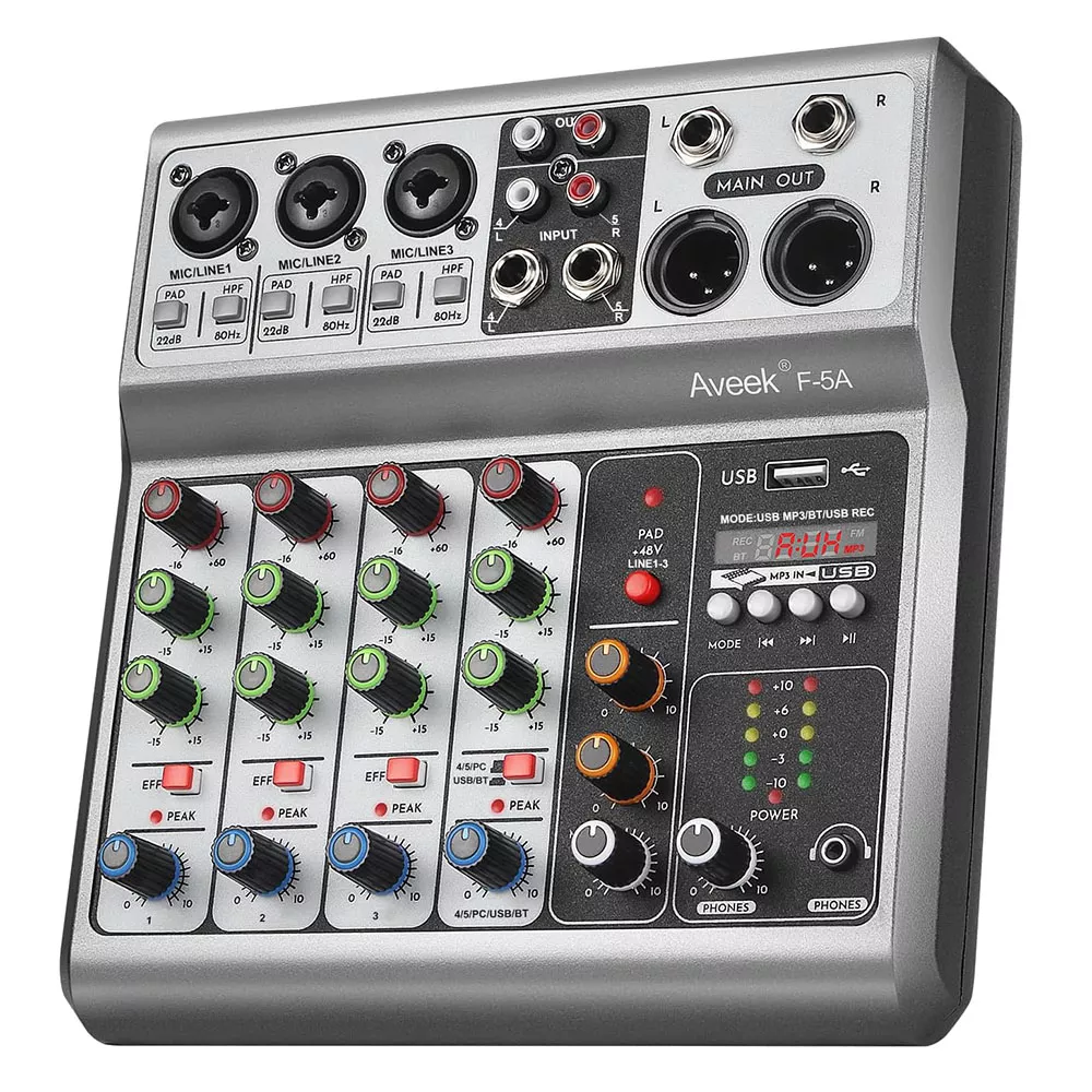 Take full control of your audio with this powerful yet easy-to-use 5-channel audio mixer. Designed for creators who want clean sound without complicated setups, this mixing console brings professional features into a compact, practical design. Whether you are recording at home, streaming live, or hosting an event, it delivers clear, balanced audio every time.