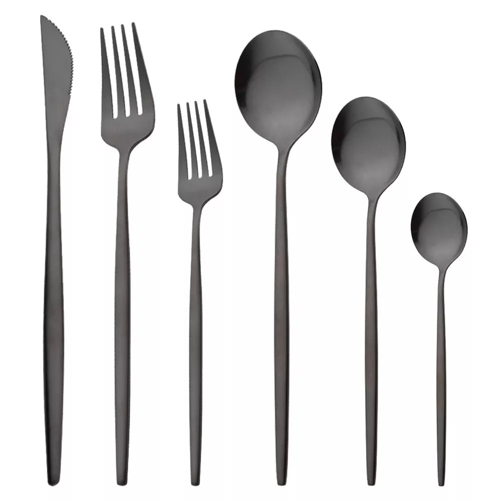 Bring sophistication and style to your dining table with this 6-Piece Black Matte Stainless Steel Cutlery Set. Designed for modern homes and special gatherings, this sleek dinnerware set transforms any meal into a fine dining experience. Its deep matte black finish adds a touch of luxury, while the ergonomic design ensures comfort and balance with every use.