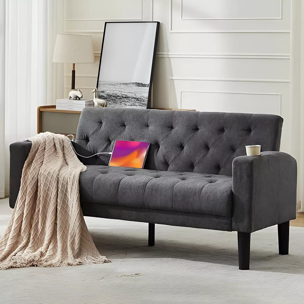 This loveseat is more than just a pretty face. Built with your lifestyle in mind, it features two integrated USB charging ports so your devices stay powered up while you relax. The solid wood frame, serpentine springs, and high-density foam provide reliable support, while the cup holders built into each armrest let you sip your favorite beverage hands-free. Side storage pockets give you easy access to remotes, magazines, or books — all in one spot.