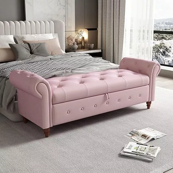 Elevate your space with this luxurious 63-inch tufted storage ottoman bench — a versatile piece designed to blend beauty, comfort, and function in any room. Crafted with care and style, this elegant bench features a button-tufted seat, rolled arms, and soft, breathable upholstery that brings a classic charm to your bedroom, living room, hallway, or nursery. Whether you need a cozy seat, a stylish storage solution, or an accent piece, this ottoman bench delivers it all with effortless grace.