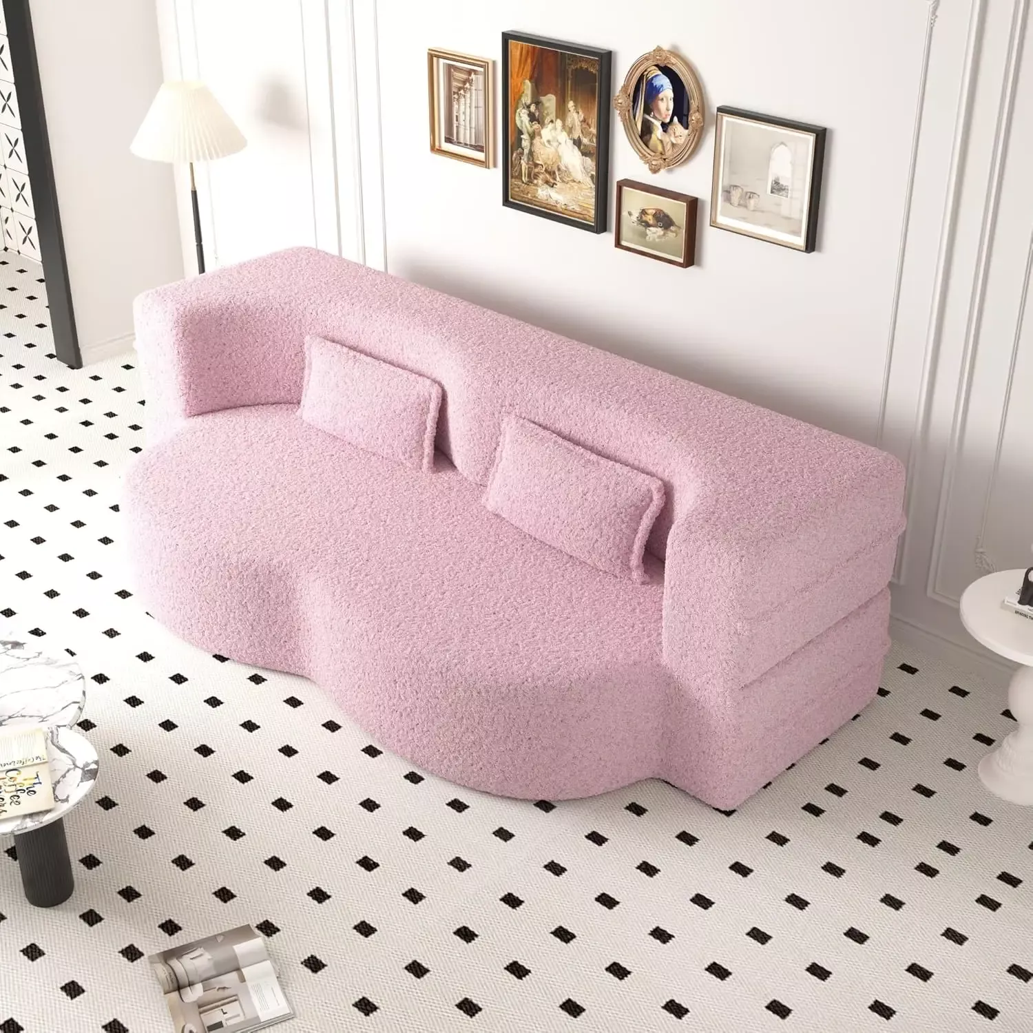 Transform your space with the ultimate blend of style, comfort, and functionality. The 78″ Convertible Folding Sofa Bed is the smart solution for modern living, designed for those who value both elegance and efficiency. By day, it’s a chic, curved loveseat that elevates any room with its modern teddy fabric and sleek lines. By night, it easily unfolds into a queen-sized sleeper bed — perfect for unexpected guests, cozy movie nights, or your everyday lounging routine.