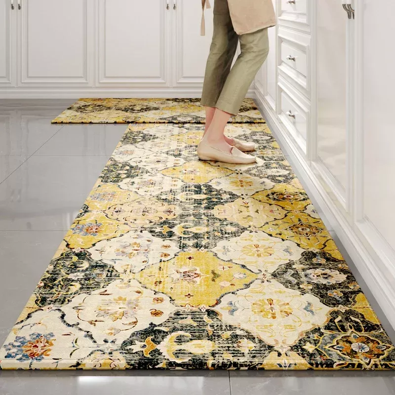 Bamboo Cotton Retro Non-Slip Kitchen Floor Mat – Water & Oil Absorbing Rug