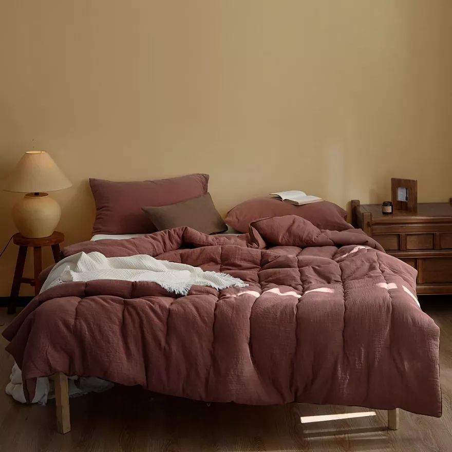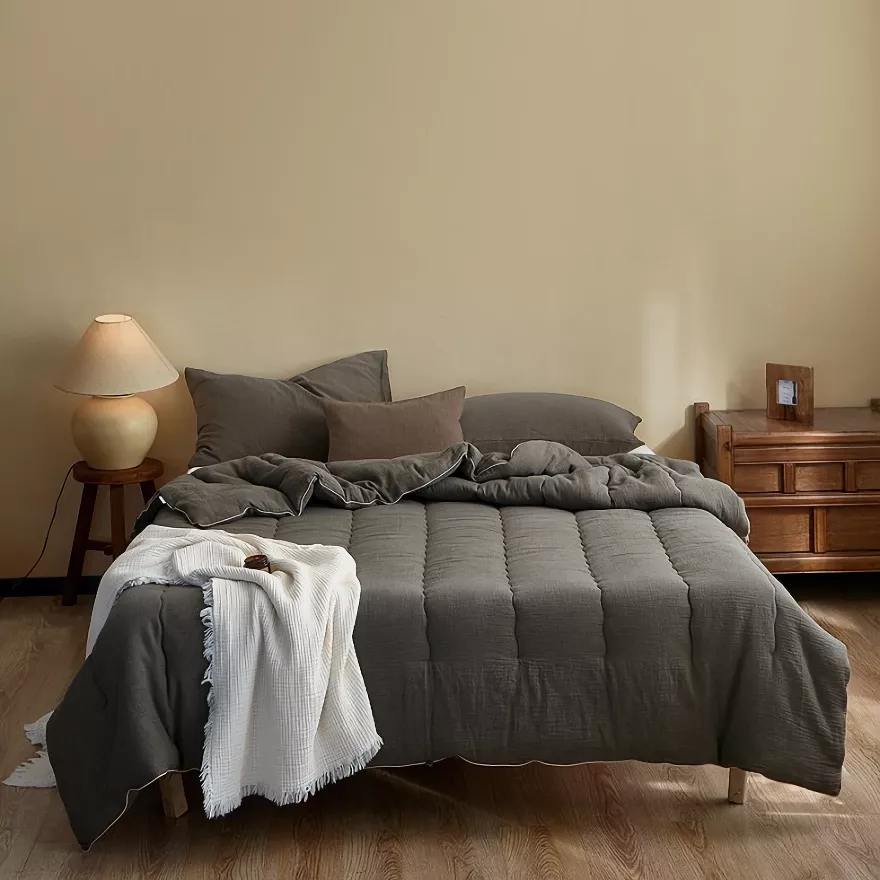 Wrap yourself in effortless comfort with this beautifully crafted cotton gauze quilt, designed for sleepers who prefer a light, airy feel. Perfect for warm nights and air-conditioned rooms, this quilt offers gentle coverage without heaviness. The soft cotton surface feels smooth against the skin, while the breathable construction allows heat to escape naturally, helping you relax and drift into deeper sleep.