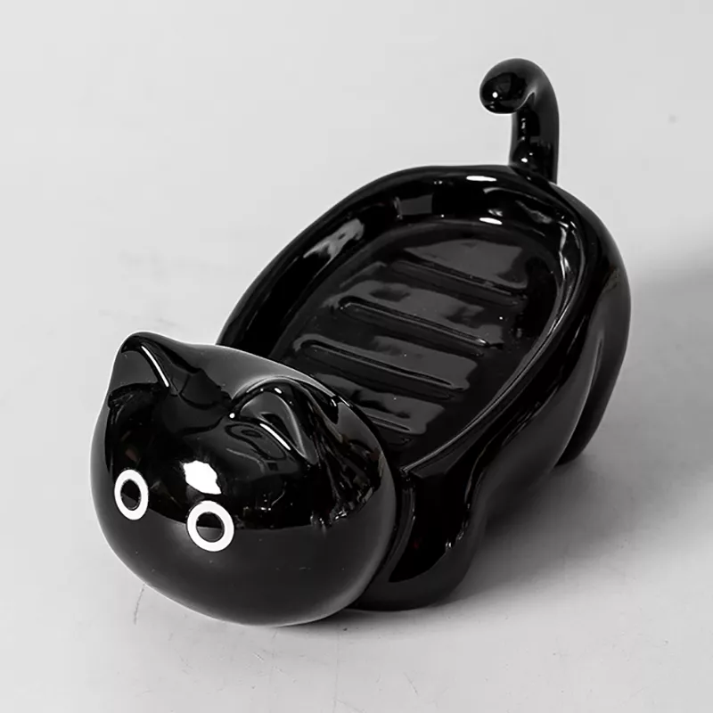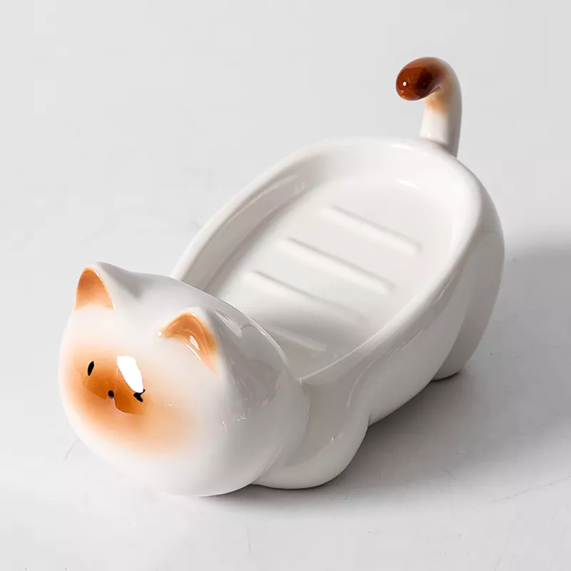 Cartoon Cat Ceramic Soap Dish with Drainage