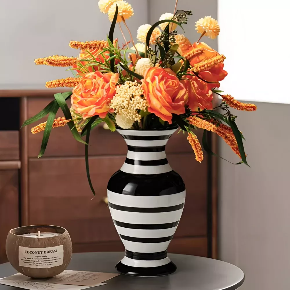 This ceramic vase is not just a container for flowers—it’s an artistic statement. The clean lines and contemporary design make it the ideal piece for modern living rooms, kitchens, or even offices. Whether you place it on your coffee table, dining table, or shelf, it will instantly elevate the ambiance of your space.