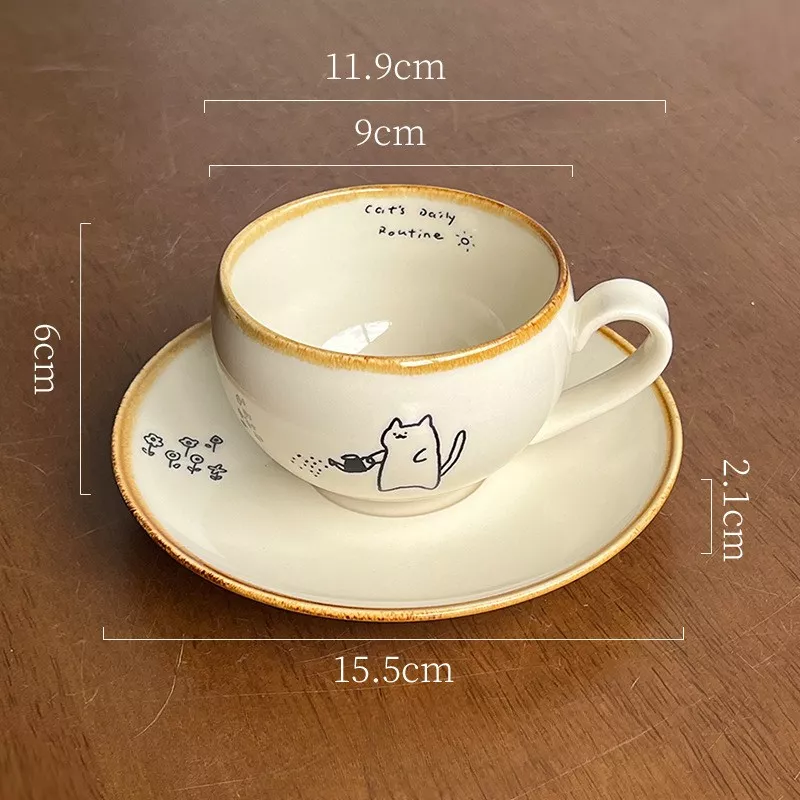 Start your mornings with a smile using this Charming Cat-Inspired Ceramic Coffee Cup & Saucer Set. Designed with delightful hand-painted cat illustrations, this cup adds a touch of playfulness and artistry to your daily coffee ritual. Crafted with care using high-quality ceramic and underglaze color techniques, it combines durability with an elegant, high-end feel — perfect for coffee lovers who appreciate both style and function.