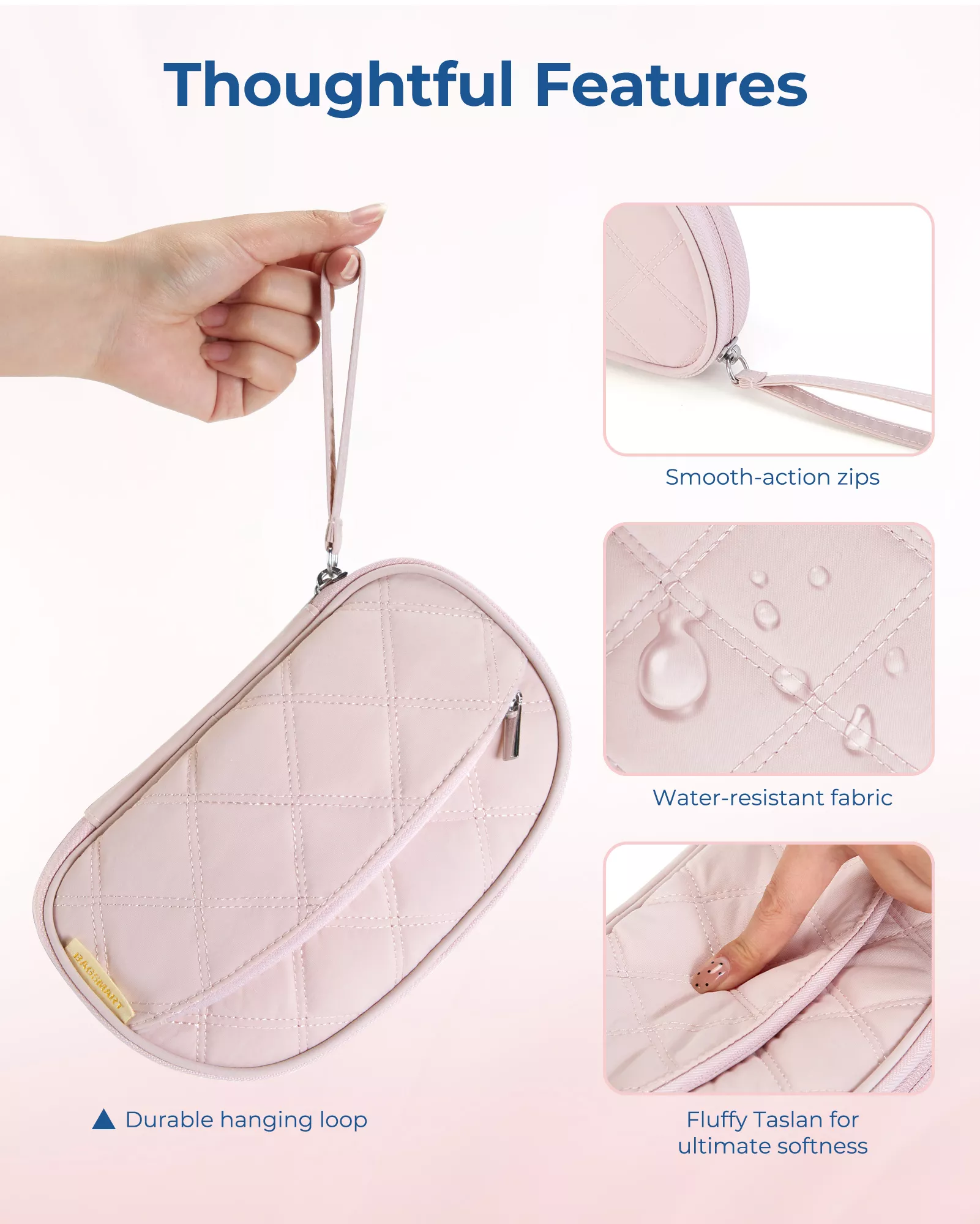 • Smooth zipper and hand strap for easy carrying