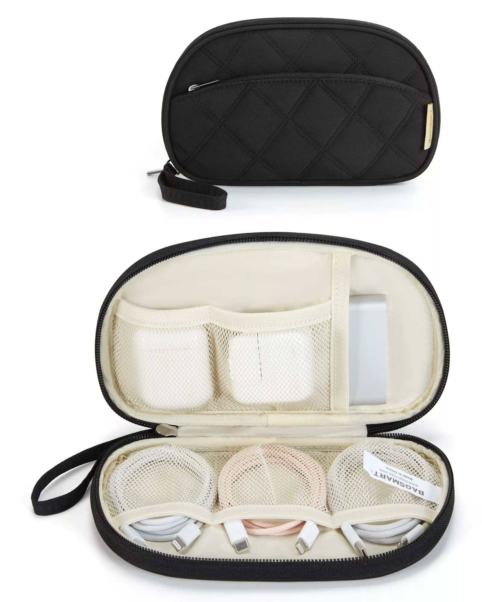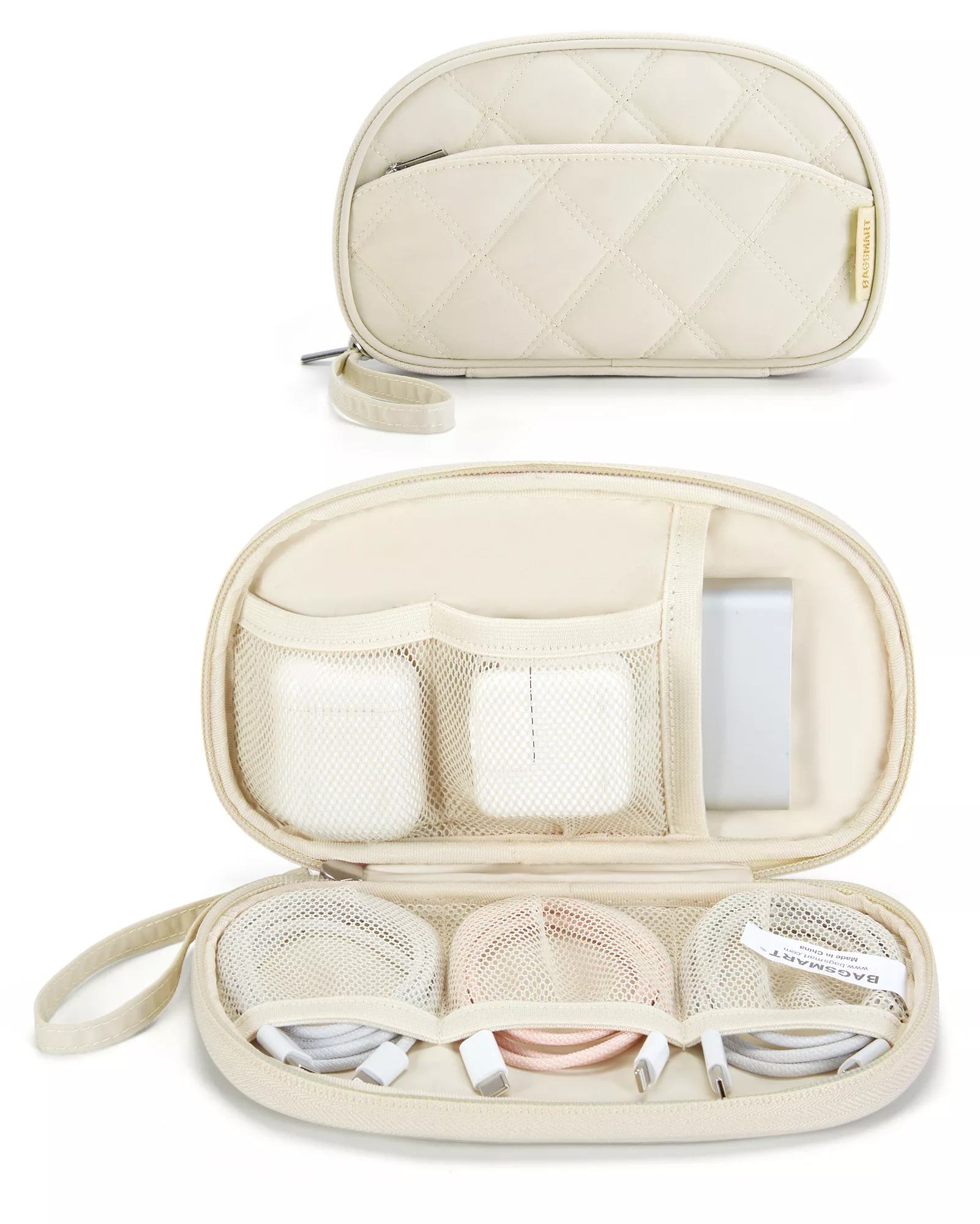 Every pocket has a purpose. Multiple interior slip pockets in different sizes hold charging cables, adapters, and flash drives with ease. A large elasticated pocket securely fits power banks or a mouse, while the exterior zip pocket allows quick access to earbuds, keys, or small essentials. Measuring approximately 8.35 x 5 x 1.2 inches and weighing just 0.22 lb, it fits effortlessly into backpacks, handbags, laptop bags, or carry-on luggage.