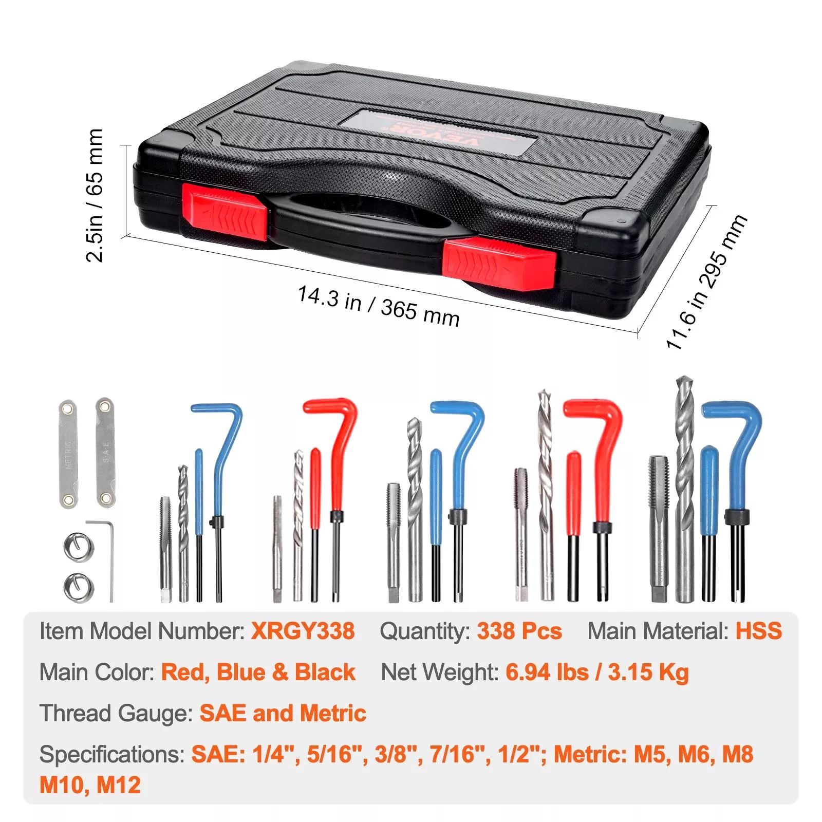 Complete Helicoil Thread Repair Kit SAE & Metric Rethreading Tool Set