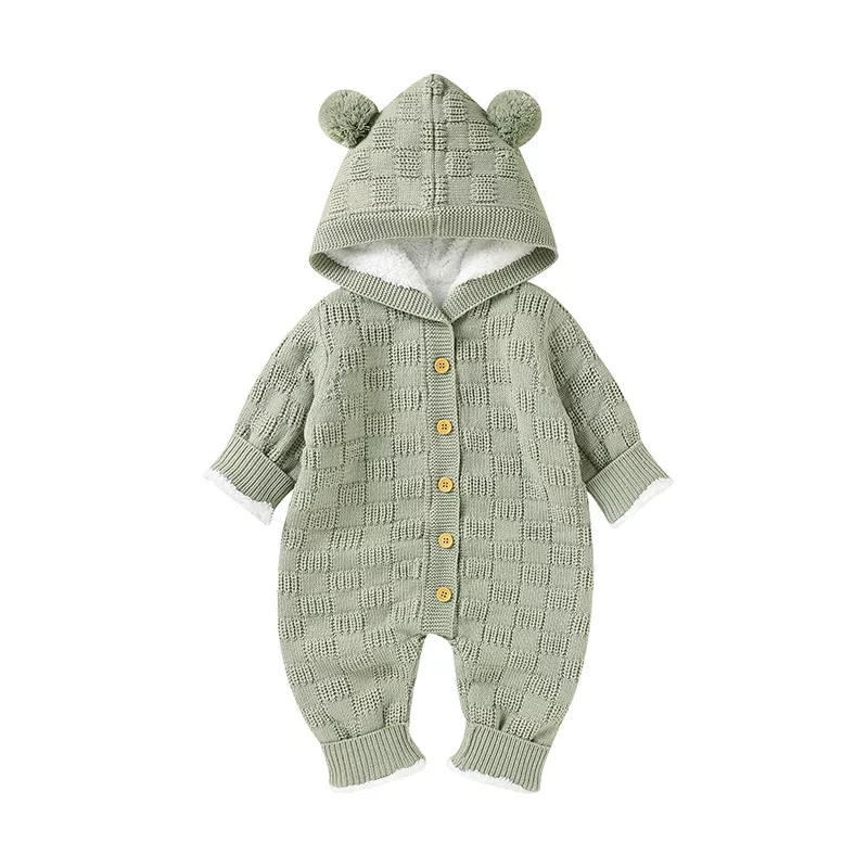 If you are looking for a reliable, adorable, and warm outfit your baby can wear every day, this knitted hooded romper is a must-have. It offers comfort parents trust and a look everyone loves. Add this cozy onesie to your cart today and give your baby the warmth and softness they deserve this season.