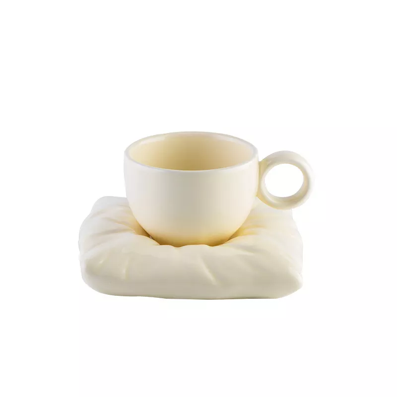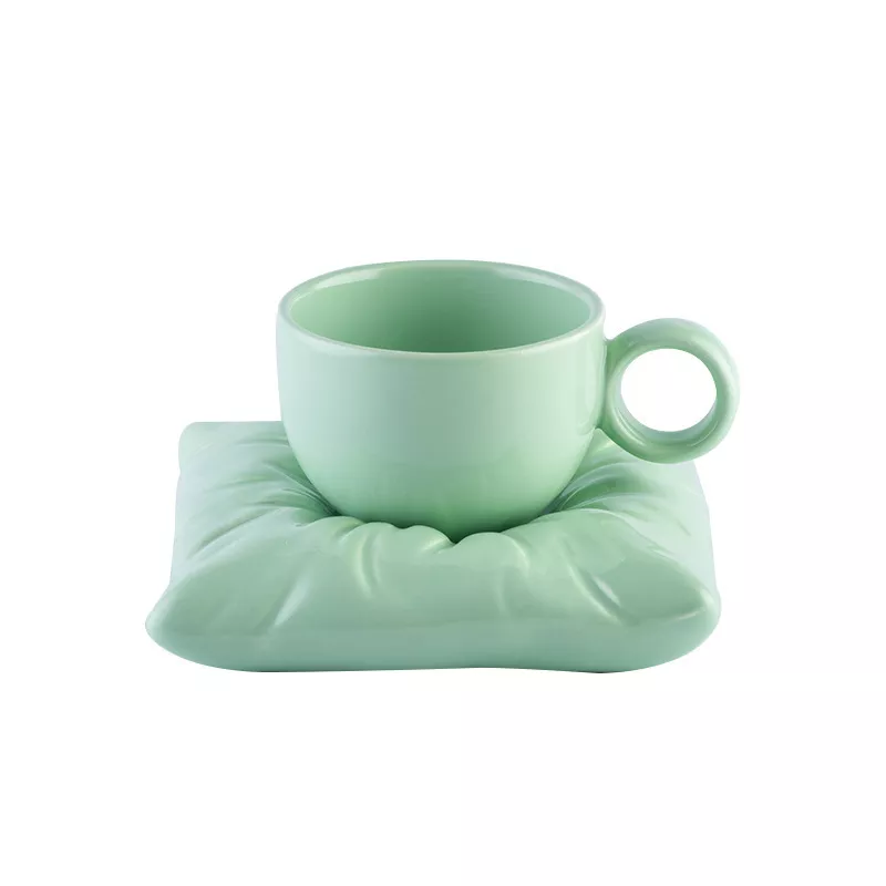 Start your day off right with our Creative Ceramic Coffee Cup and Saucer Set, designed to elevate your breakfast and tea experience. This charming set is perfect for enjoying everything from a rich cup of coffee to a soothing herbal tea. With its delightful pillow bag design and vibrant colors, this mug and plate combo adds a touch of joy and elegance to your mornings, making every sip a delightful experience.