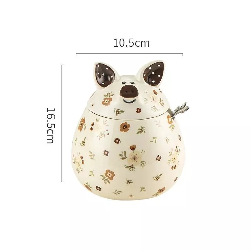Cute Animal Ceramic Seasoning Jar for Sugar, Salt & Spices