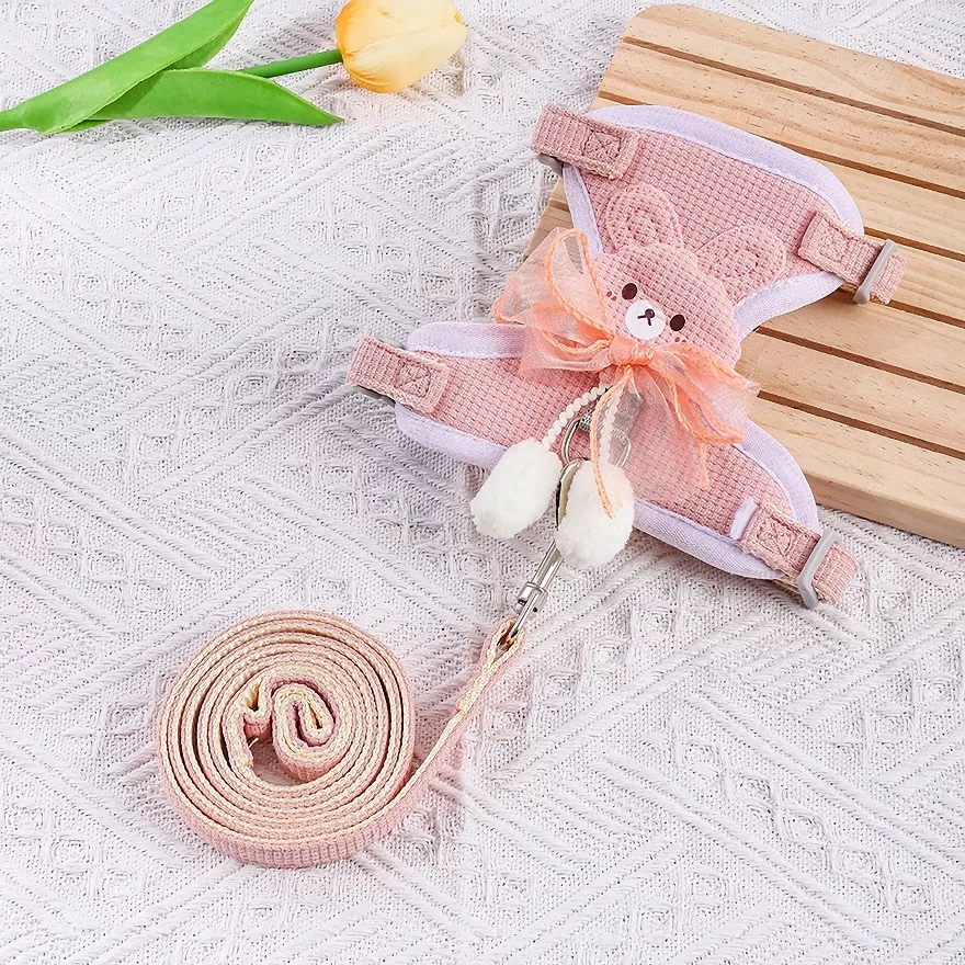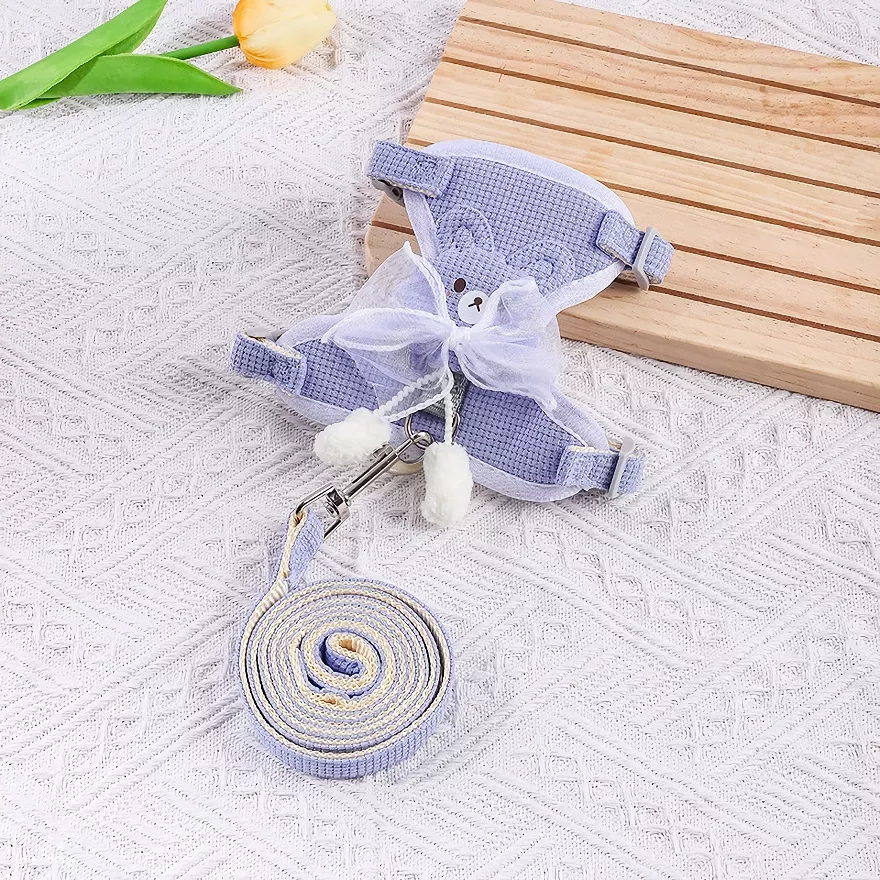 Give your pet a look that turns heads while keeping them safe and comfortable. This adorable lace bow harness vest set is designed for small dogs and cats who deserve both style and security. Soft to the touch and lightweight on the body, it wraps gently around your pet’s chest without pulling on the neck. The elegant bow detail adds a sweet, fashionable finish that makes every walk feel special.