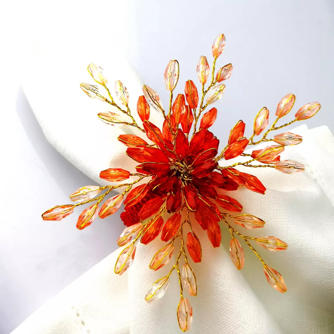 Add a touch of elegance to your dining experience with these Acrylic Flower Napkin Rings. Each ring is beautifully crafted from high-quality acrylic beads and durable stainless material, designed to catch the light and make every table setting shine. Perfect for holidays, special dinners, weddings, or everyday use, these floral napkin rings transform an ordinary meal into a stylish occasion.