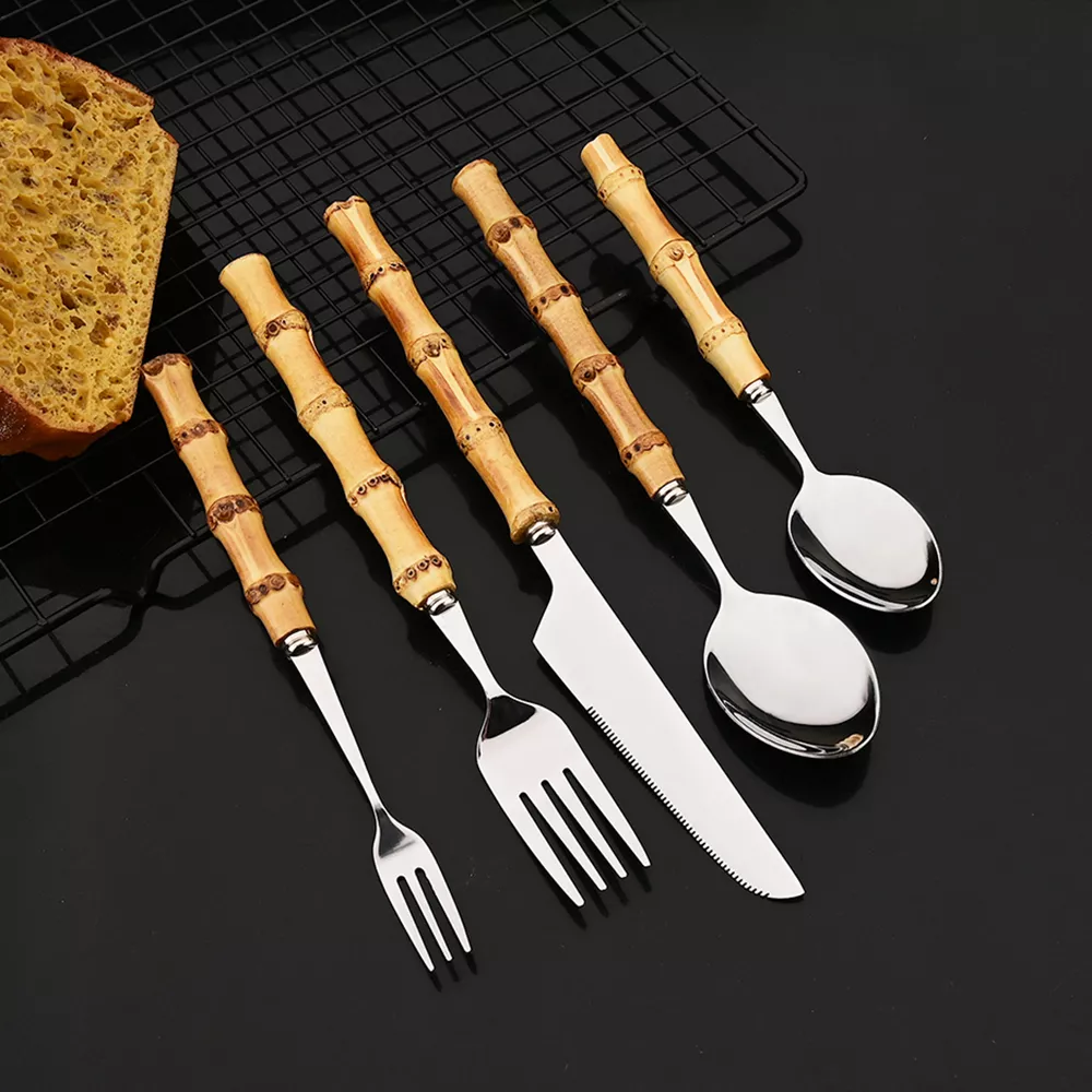 Turn every bite into a moment of joy with this stunning Bamboo Handle Stainless Steel Flatware Set. Simple yet sophisticated, it’s more than just tableware — it’s an upgrade to your dining lifestyle. Add a touch of elegance and eco-conscious craftsmanship to your home today. Order now and make your table as beautiful as your meals.