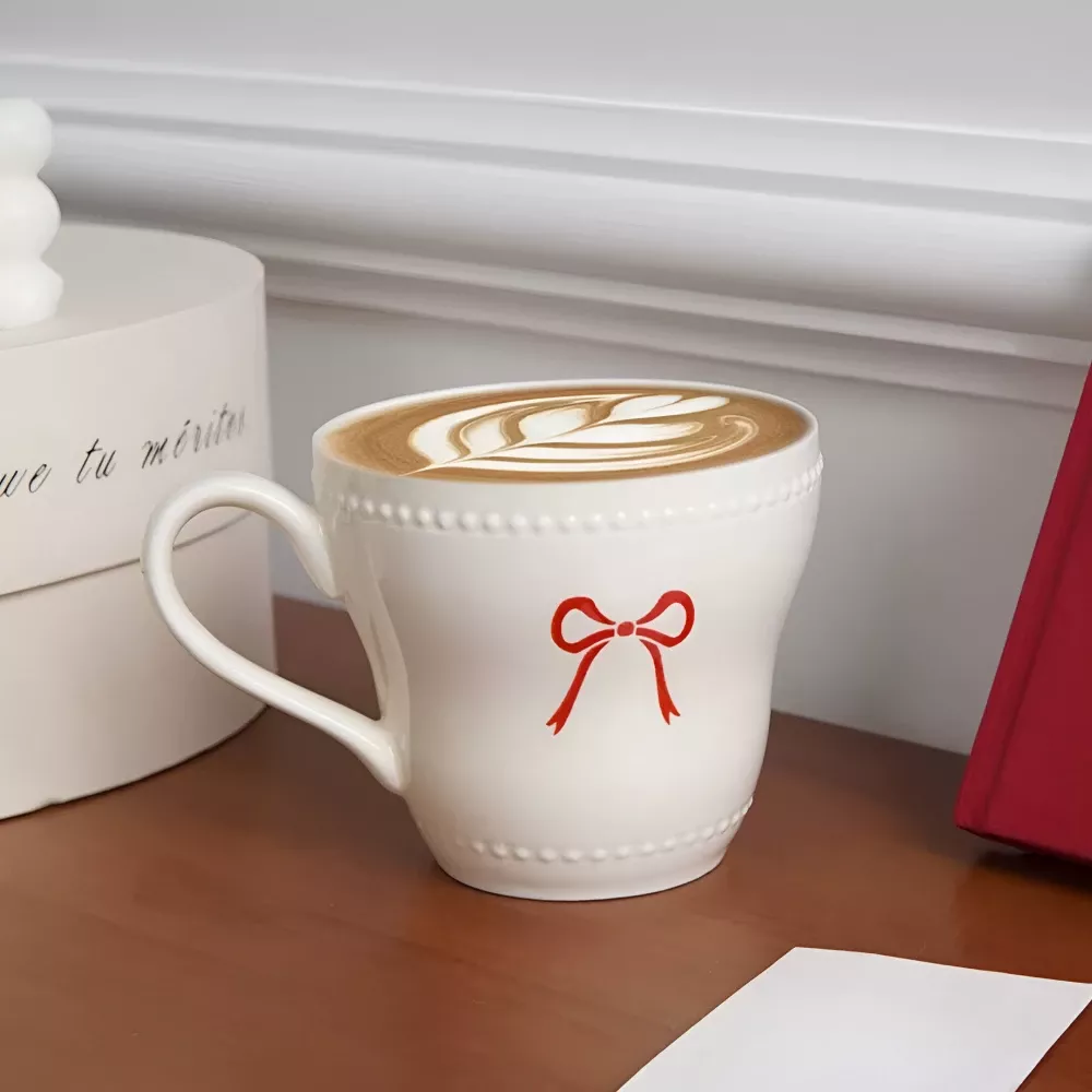 Enjoy your favorite coffee, tea, or cocoa in style with the Elegant Bowknot Porcelain Mug. Designed to bring a touch of grace to your mornings, this mug features a delicate beaded lace pattern paired with an exquisite bowknot detail. Its refined porcelain construction gives it a smooth finish and luxurious feel—perfect for those who love elegant yet practical tableware. Whether for a quiet breakfast, an afternoon tea, or a café-style latte, this mug turns ordinary moments into beautiful rituals.