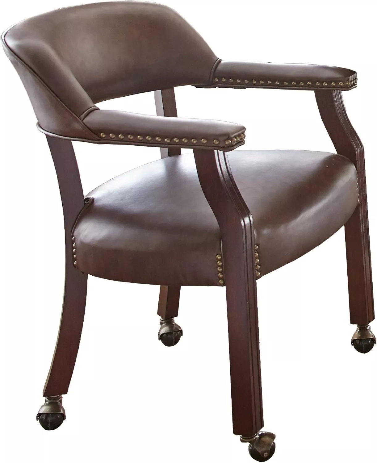 Elegant Cherry Finish Dining Chair with Casters & Nailhead Trim