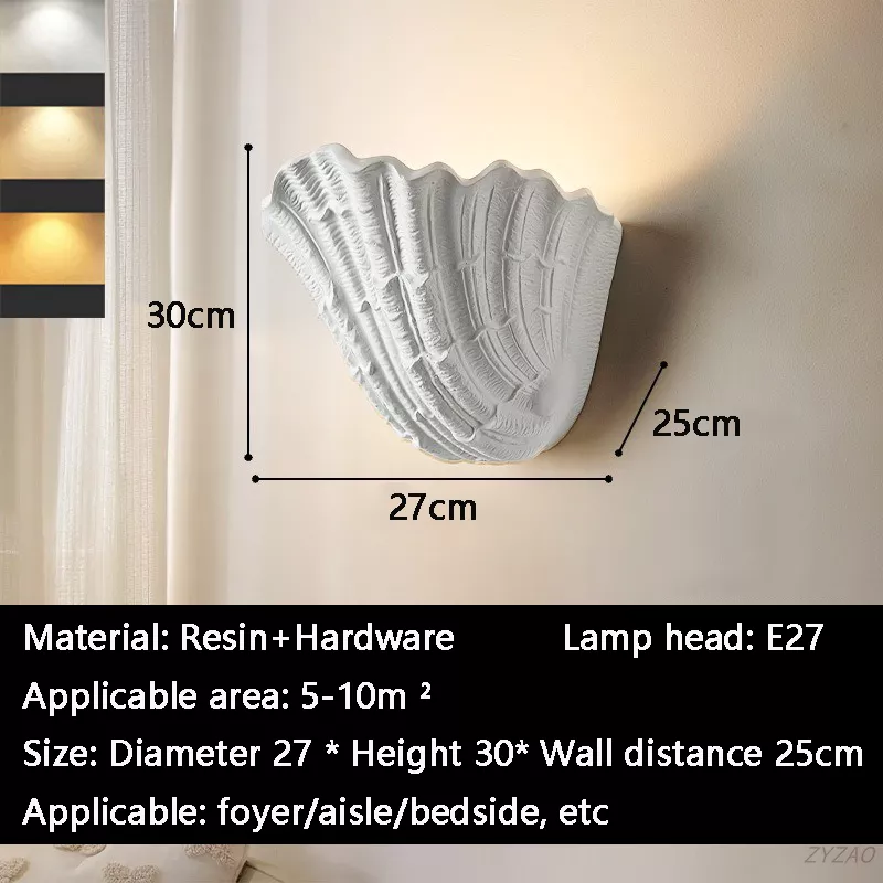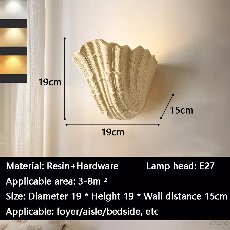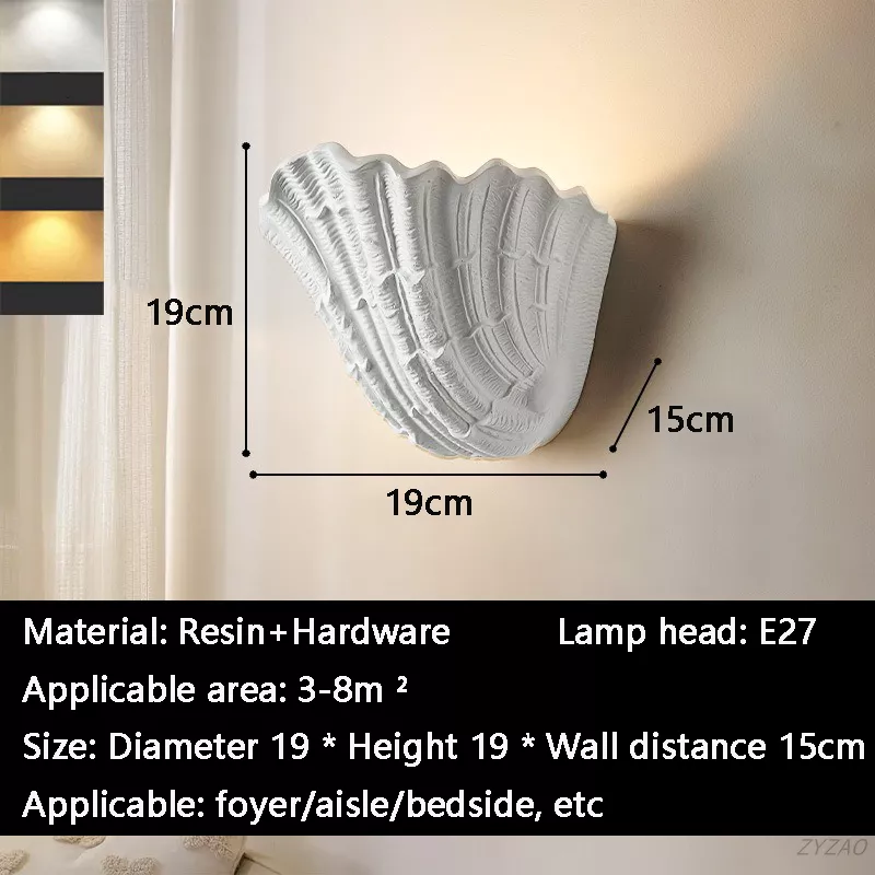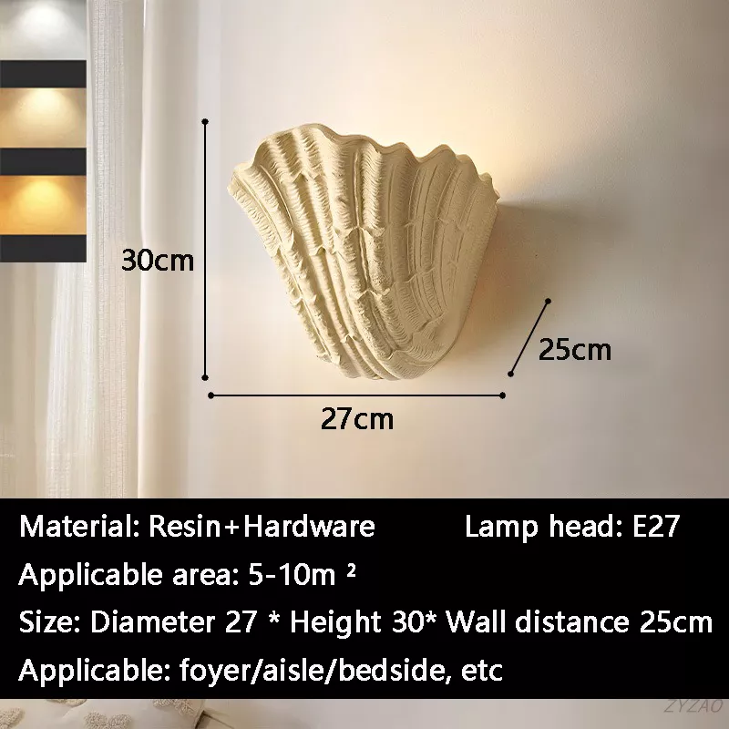 Each wall light features a sculpted shell design that casts soft, atmospheric lighting—perfect for creating a relaxing mood in your bedroom, hallway, staircase, or bedside area. The E27 bulb socket provides flexibility for different light tones, allowing you to tailor the ambiance to your liking. Available in two sizes—small (7.5 in diameter × 7.5 in height × 6 in wall distance) and large (10.6 in diameter × 11.8 in height × 9.8 in wall distance)—this lamp fits beautifully in both intimate and spacious settings.
