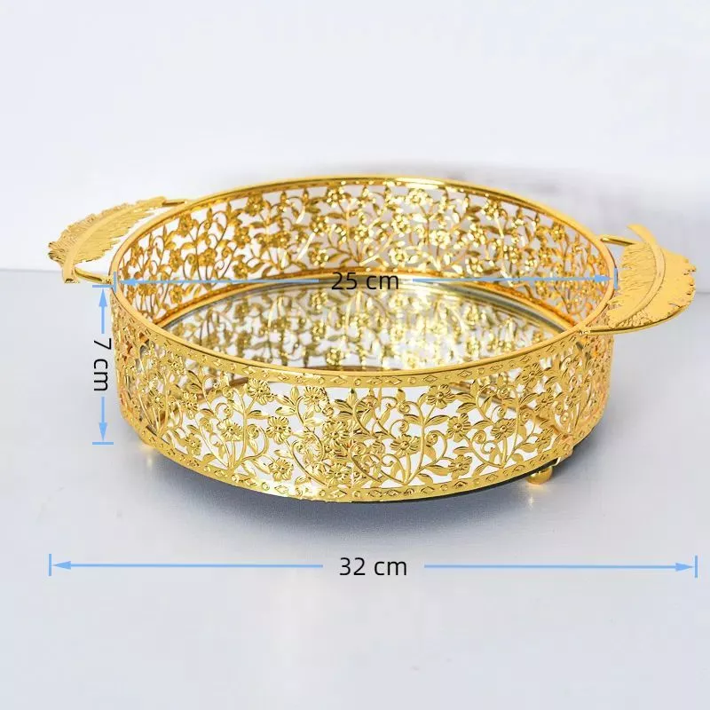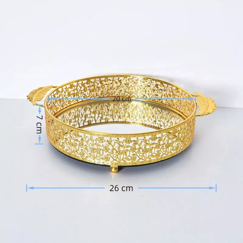 The Gold Metal Mirror Tray is ideal for both everyday use and special occasions. Use it to serve appetizers or desserts during family gatherings, showcase beautiful floral arrangements on a coffee table, or create a stylish display for your favorite candles and decorative items. Its versatility ensures that it fits seamlessly into any event, from casual brunches to formal dinners, enhancing the beauty of your settings no matter the occasion.