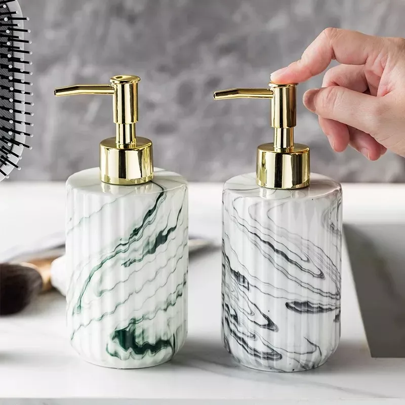 Crafted from durable ceramic, this bottle feels solid, smooth, and luxurious to the touch. The marble pattern gives it a high-end appearance without overwhelming your space. Unlike plastic bottles, ceramic offers a more polished look and long-lasting performance, making it perfect for both personal use and guest bathrooms.