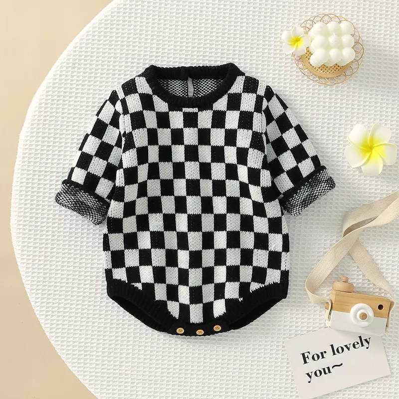 Crafted from high-quality acrylic, this romper is gentle on delicate baby skin while offering durability and breathability for everyday wear. The pullover style and flexible knit make changing quick and hassle-free, and the long sleeves with closed feet keep your baby snug from head to toe.It’s made to be worn across multiple seasons, making it a smart and stylish addition to your baby’s wardrobe.