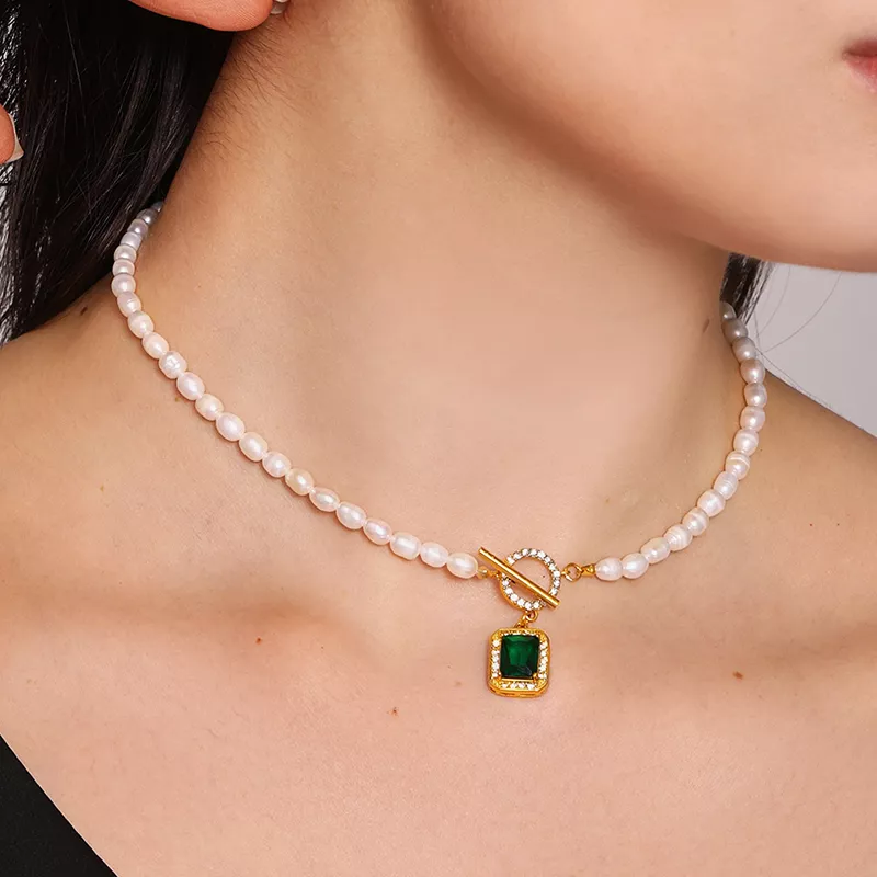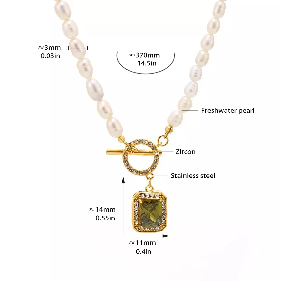 Each pearl strand is carefully arranged to highlight its natural texture and shine, giving the necklace an organic, high-end feel. The stainless steel base is coated with real gold plating using advanced PVD technology, creating a rich finish that lasts and resists fading. A sparkling cubic zircon pendant adds just the right amount of brilliance, while the front toggle clasp serves as both a secure closure and a design feature.
