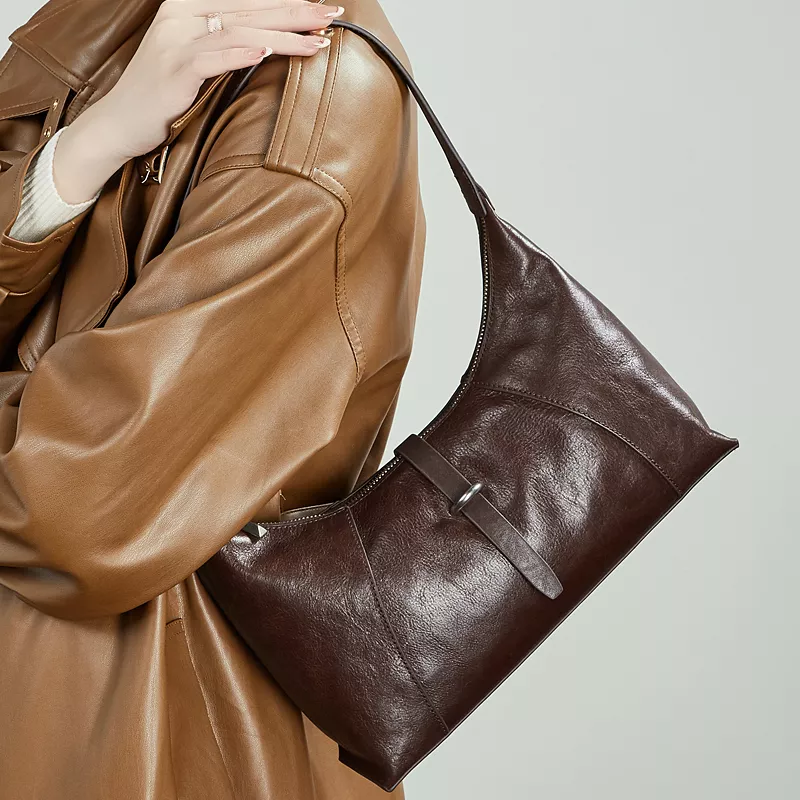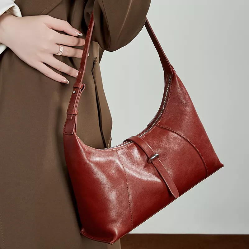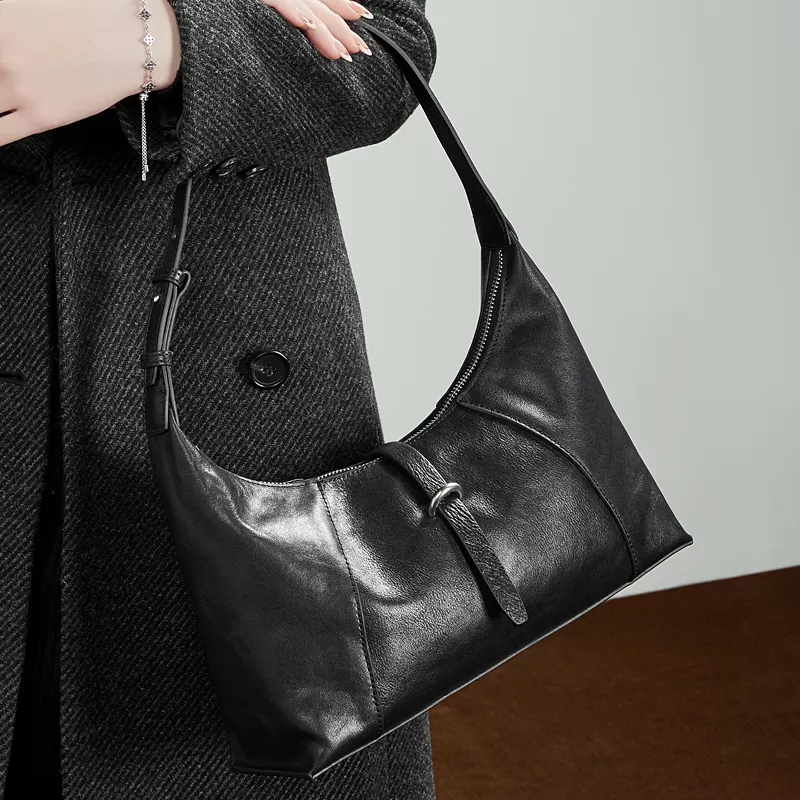Genuine Leather Crescent Underarm Shoulder Bag for Women – Luxury Crossbody Hobo Tote