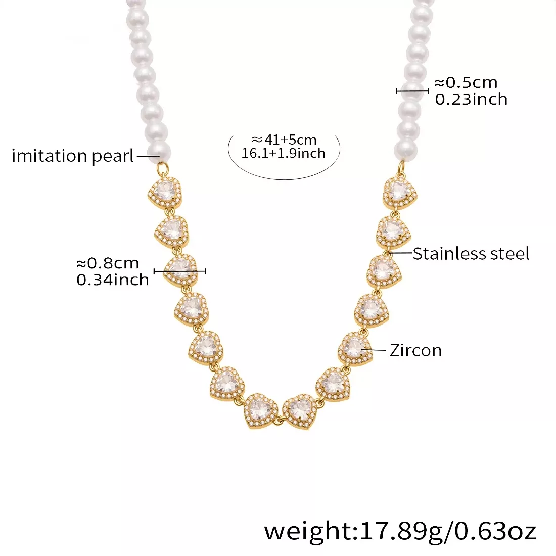 What makes this necklace truly special is its unique and thoughtful combination. Instead of choosing between pearl elegance and metallic glamour, you get both. The heart pendant is the star—a delicate gold-tone frame cradling a cluster of brilliant, faceted cubic zirconia stones that catch and reflect light beautifully. This sparkling heart is then elegantly suspended from a chain interwoven with smooth, creamy imitation pearls, offering a texture and sophistication you won’t find anywhere else.