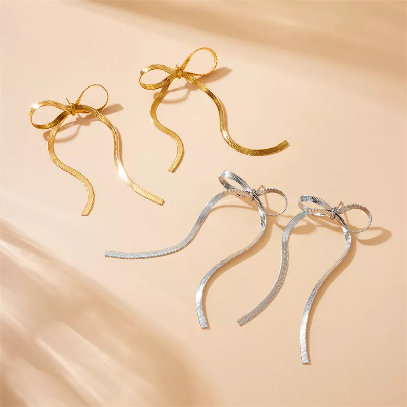 What sets these earrings apart is the balance between softness and strength. The bowknot adds a feminine touch, while the snake chain and hoop shape bring a modern edge. The material choice ensures durability and comfort, making them a practical yet fashionable accessory you can rely on again and again.