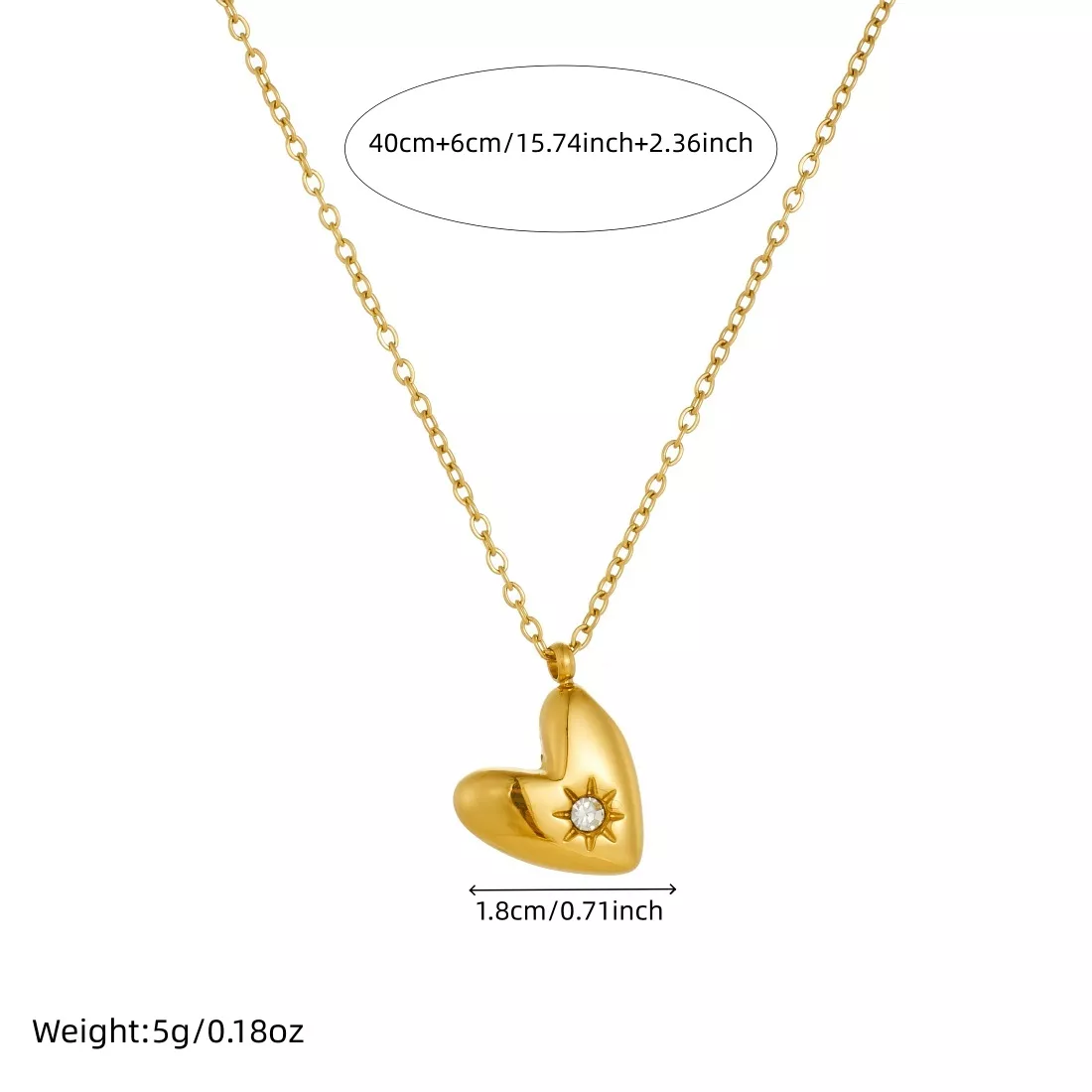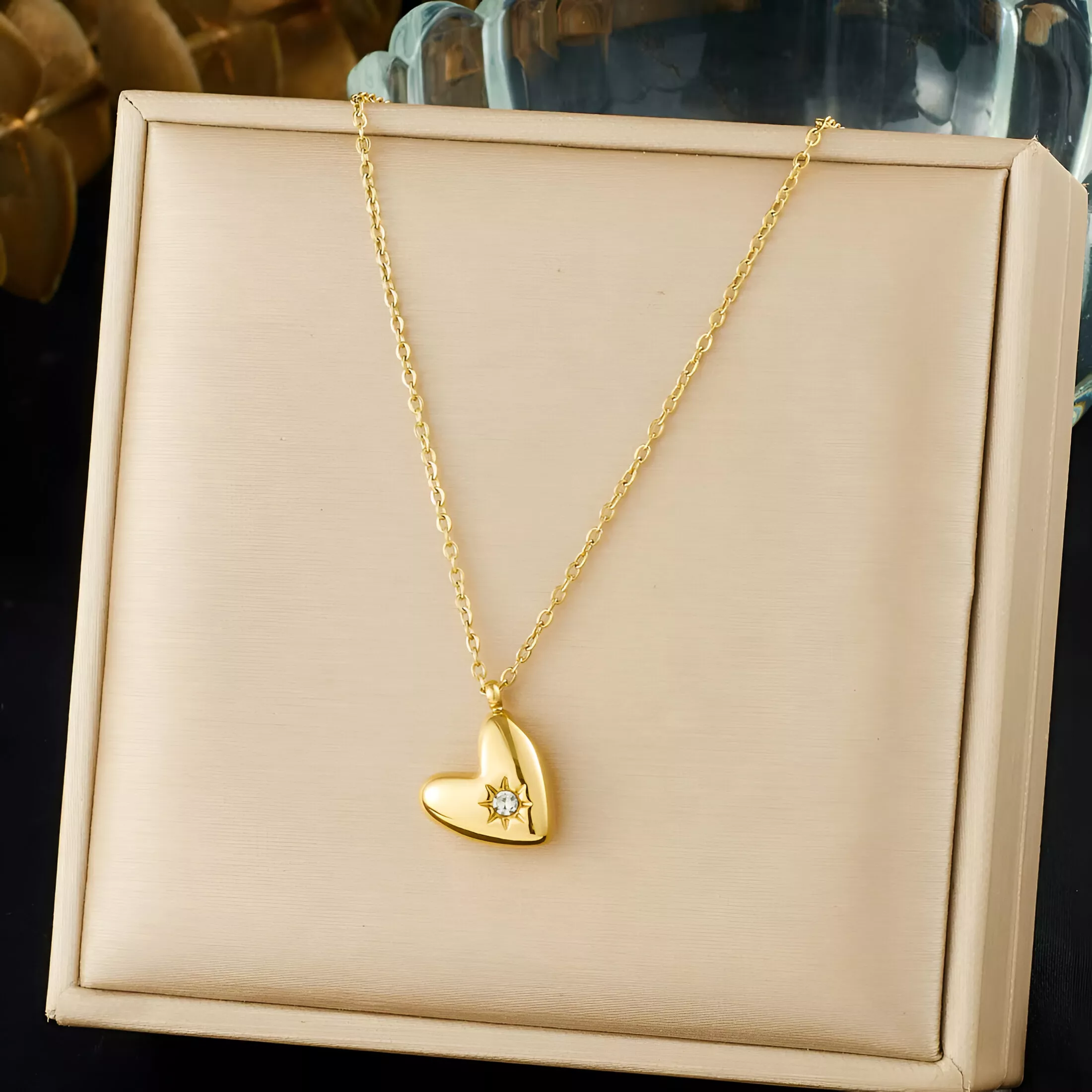 This elegant golden heart pendant necklace is designed to capture emotion, style, and confidence in one beautiful piece. With its oblique heart shape and sparkling sun zircon inlay, it brings a soft glow that instantly elevates any outfit. The warm golden tone paired with polished stainless steel creates a look that feels both classic and modern, making it an effortless everyday favorite.