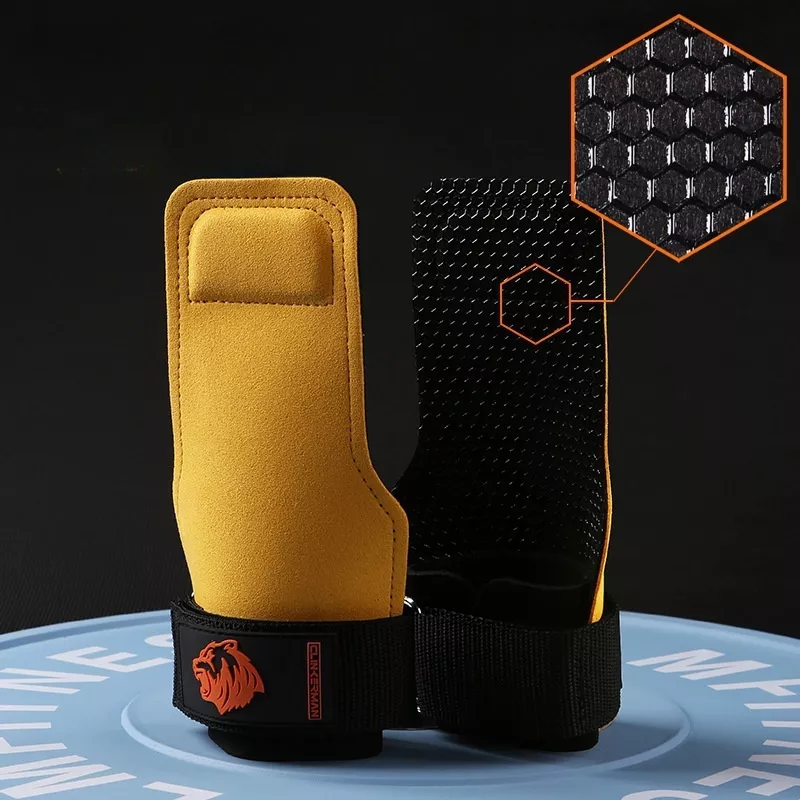 Crafted from durable microfiber and enhanced with a silicone honeycomb matrix, these wrist straps deliver superior support for your wrists and a non-slip grip on weights, bars, and machines. Available in sleek black, brown, and yellow colors, they are designed for both men and women who are committed to achieving their fitness goals. The one-size-fits-all design guarantees a snug fit, offering comfort throughout your entire workout.