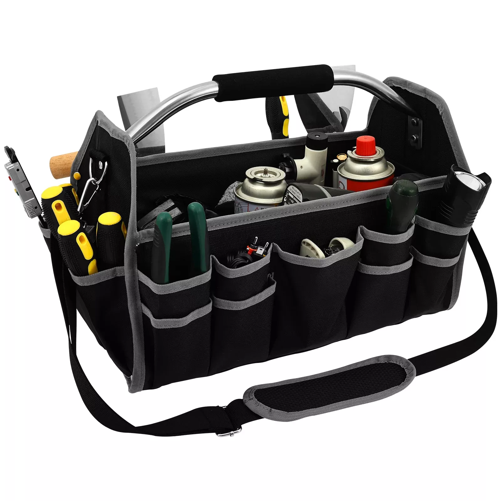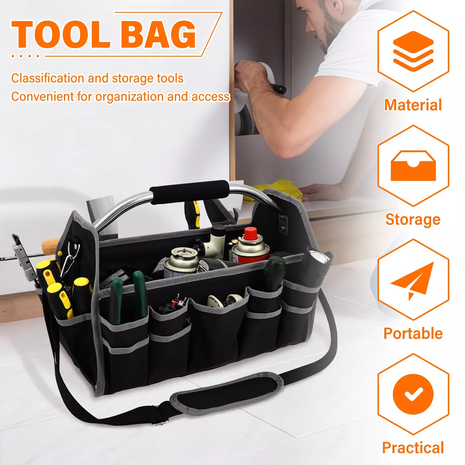 This open electrician tool tote is designed for professionals who need strength, organization, and comfort in one reliable bag. Made from tough 600D Oxford cloth with reinforced stitching, it delivers excellent wear resistance and stability for daily jobsite use. Whether you are an electrician, plumber, technician, or DIY expert, this tool tote helps you stay organized and efficient wherever work takes you.