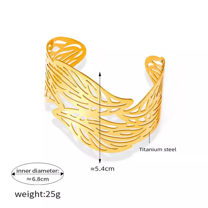 Hollow Leaf Stainless Steel Cuff Bracelet – Gold & Silver Statement Bangle