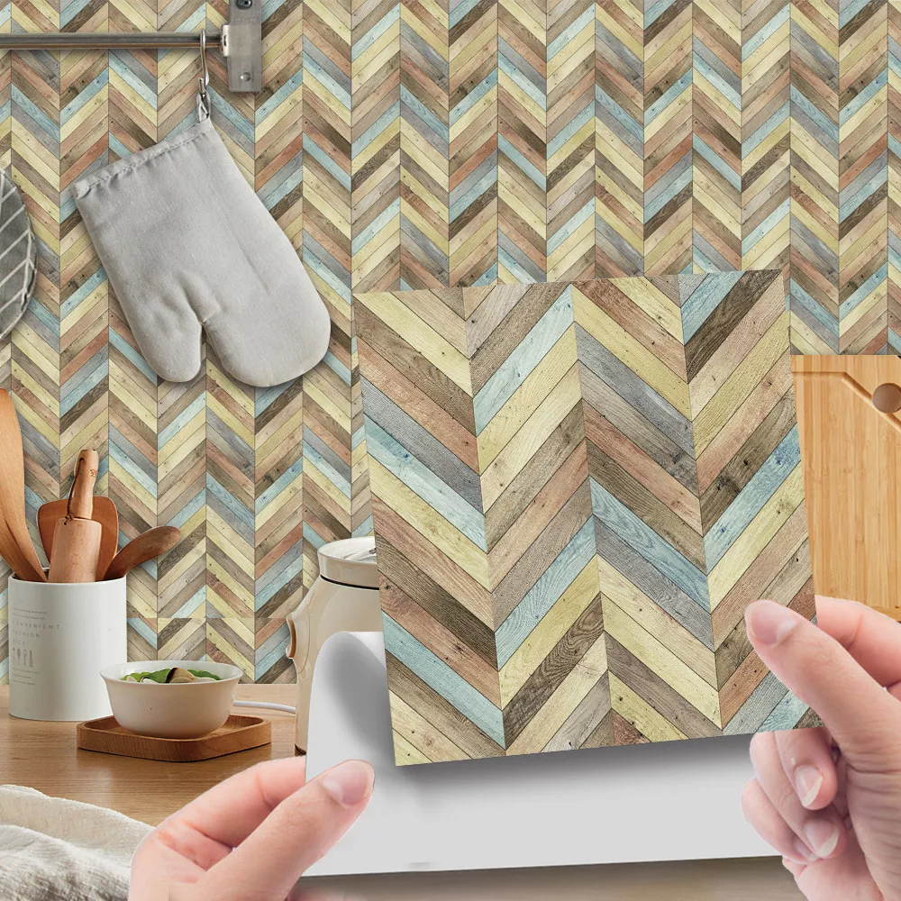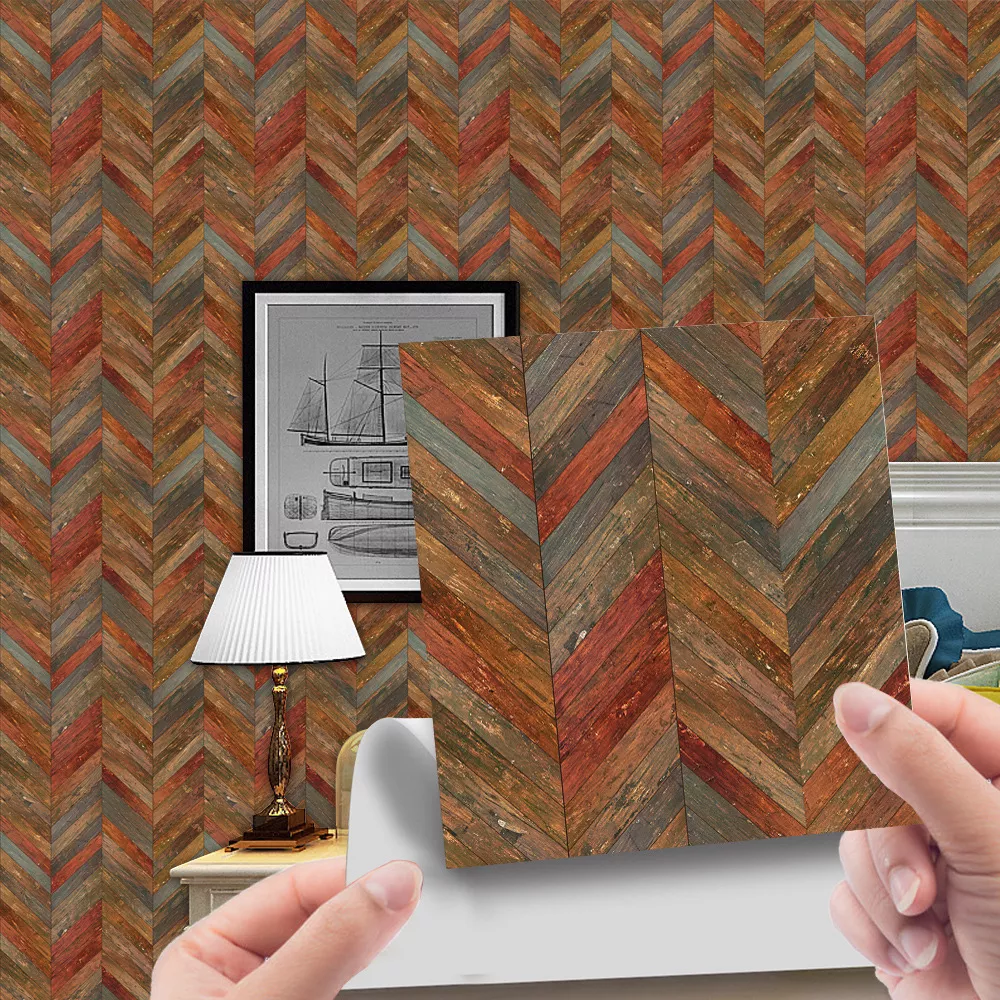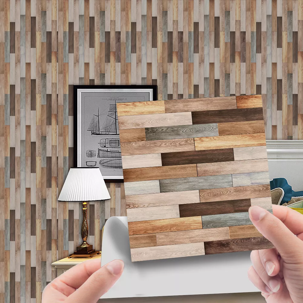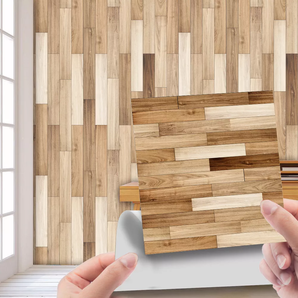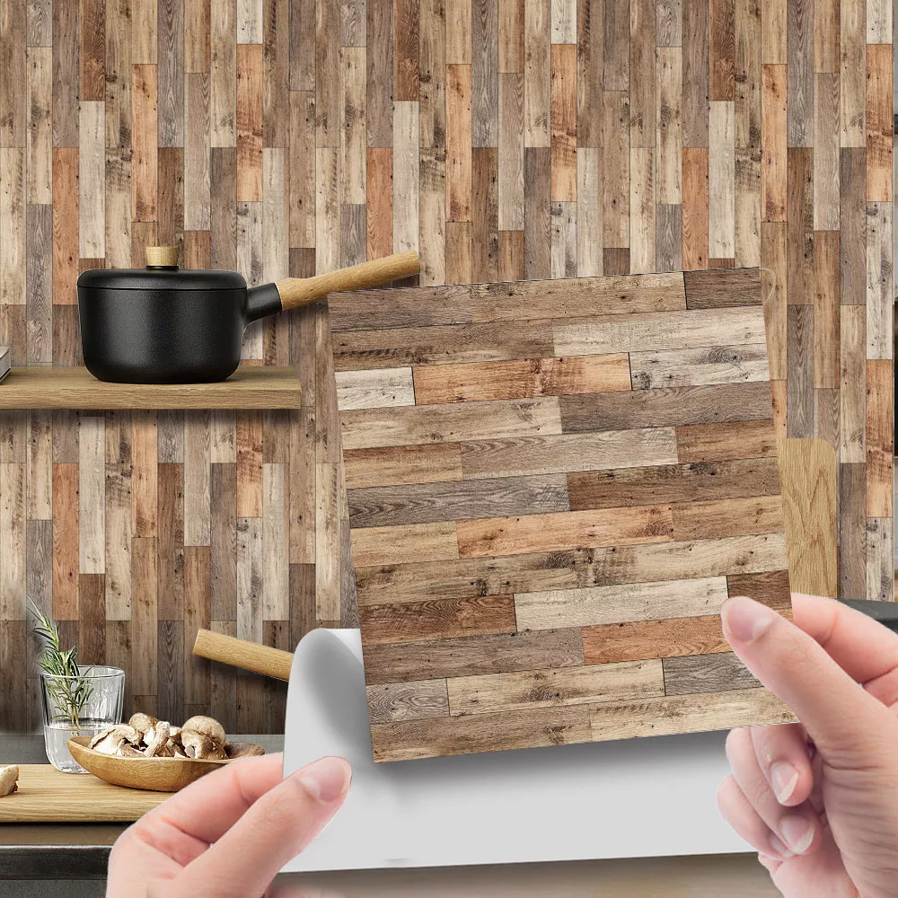 Imitation Wood Grain Self-Adhesive Wall Stickers – Retro Tile Decor