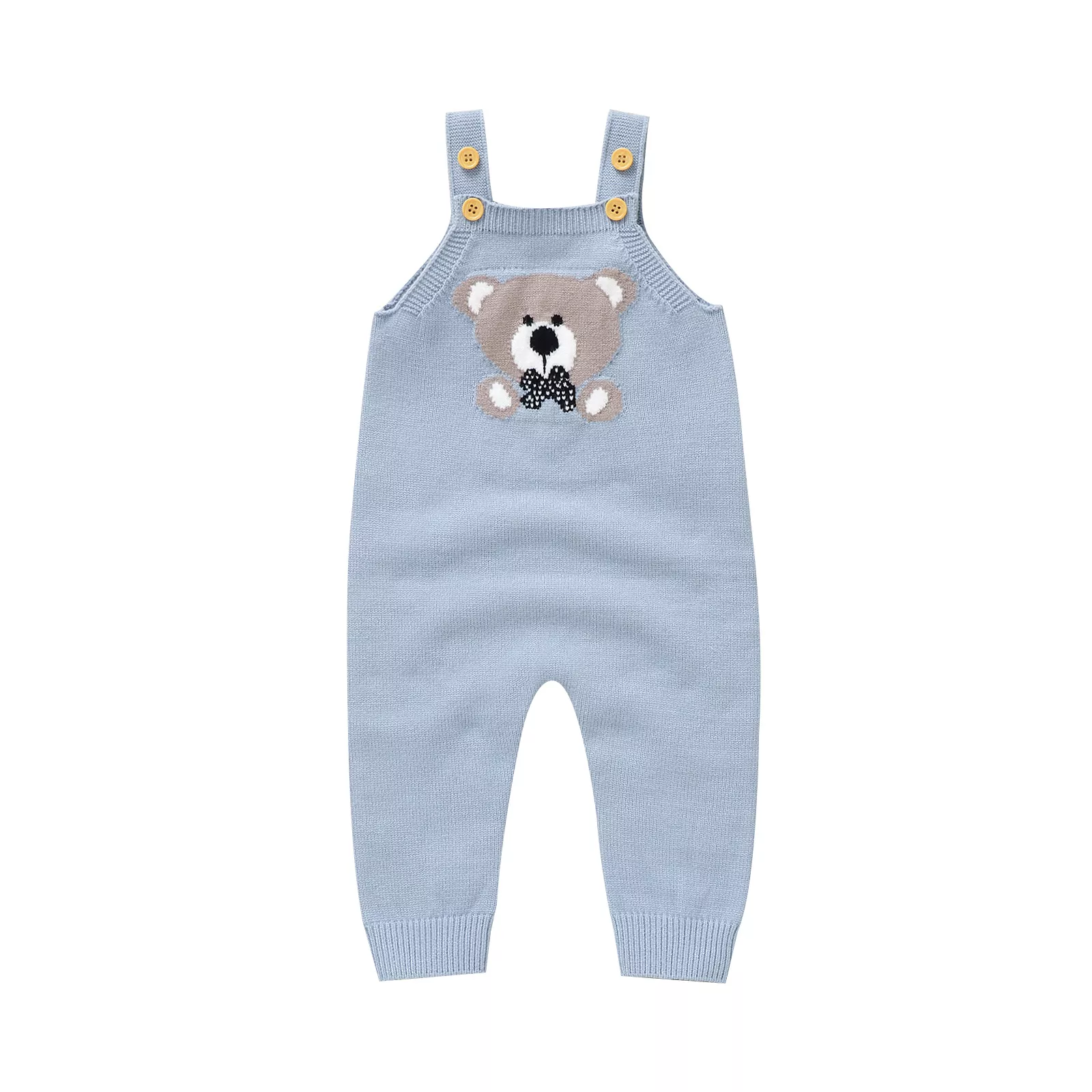 Knitted Bear Baby Romper Sleeveless Warm Jumpsuit for Newborns 0–18M