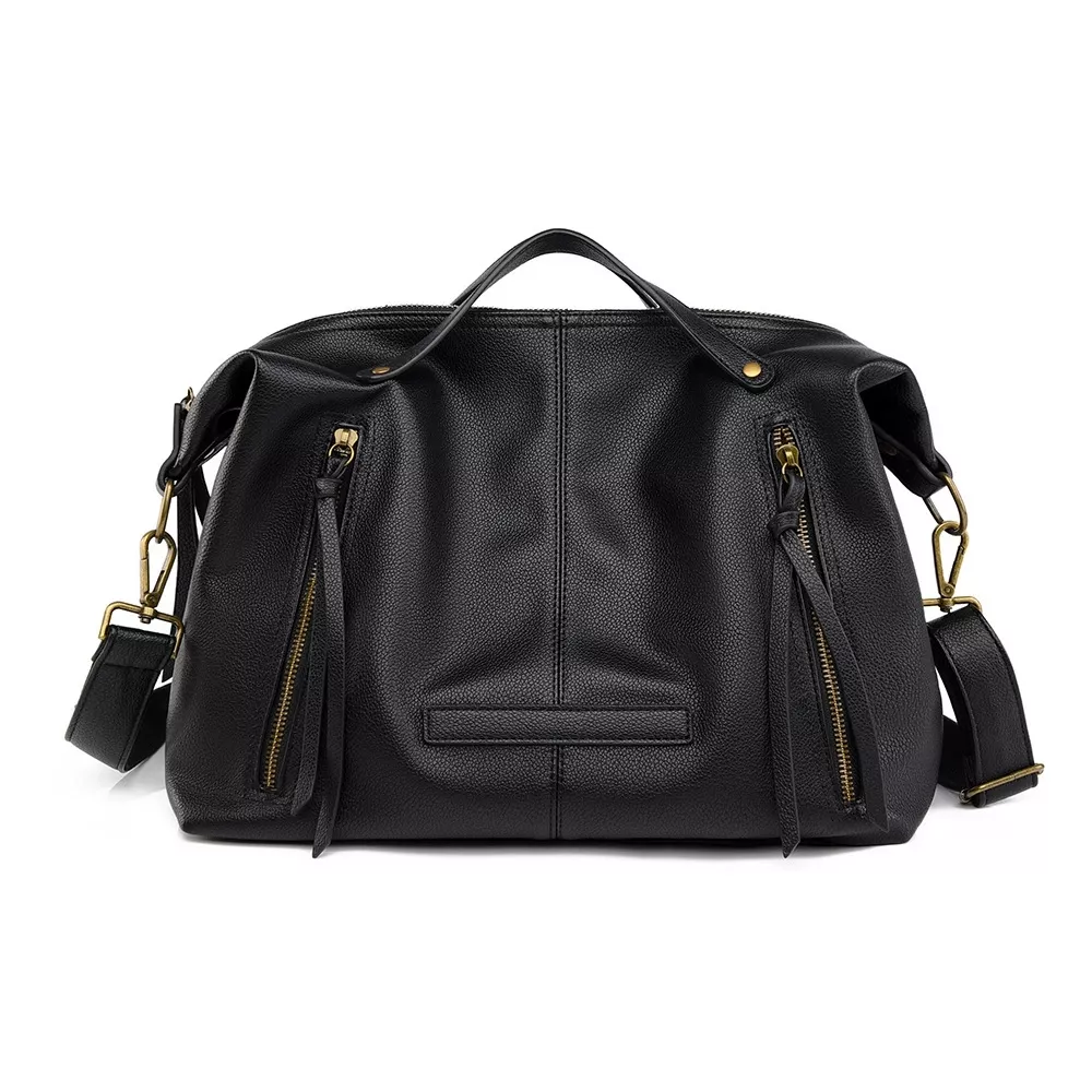 This stylish bag is made from high-quality microfiber synthetic leather that gives it a soft, luxurious feel. The sturdy polyester lining adds durability while maintaining its lightweight structure, so you can carry all your belongings with ease. Its smooth zipper closure ensures your items stay safe and secure, making it the perfect option for busy days when you’re on the move.