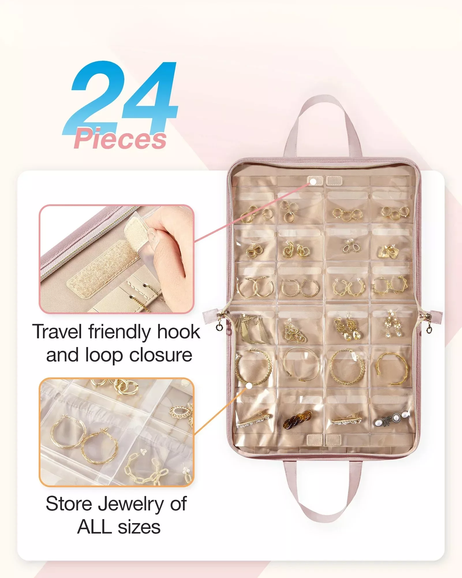 • Large capacity design that holds multiple jewelry pieces without clutter