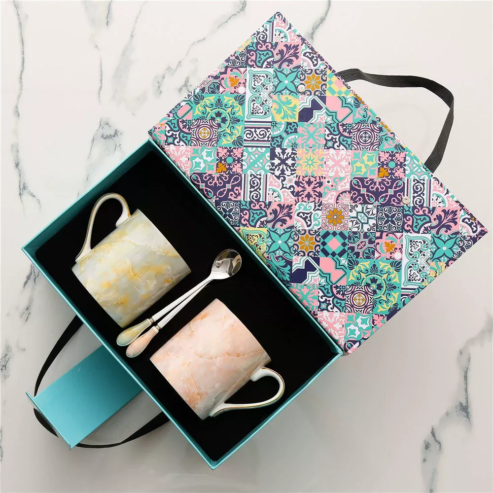 Luxury Bone China Coffee Mug Set with Spoon & Gift Box – 2 Cups