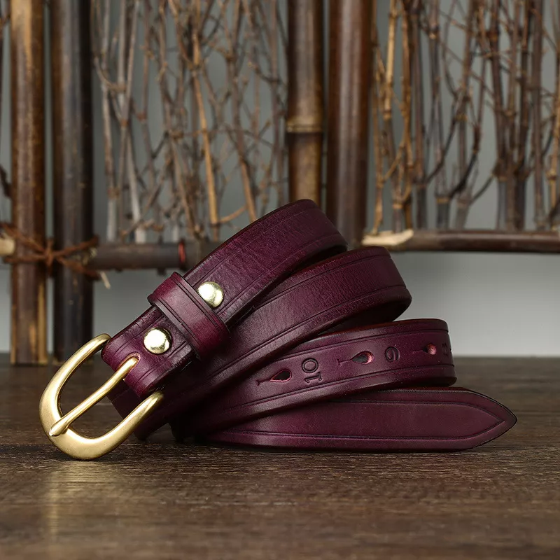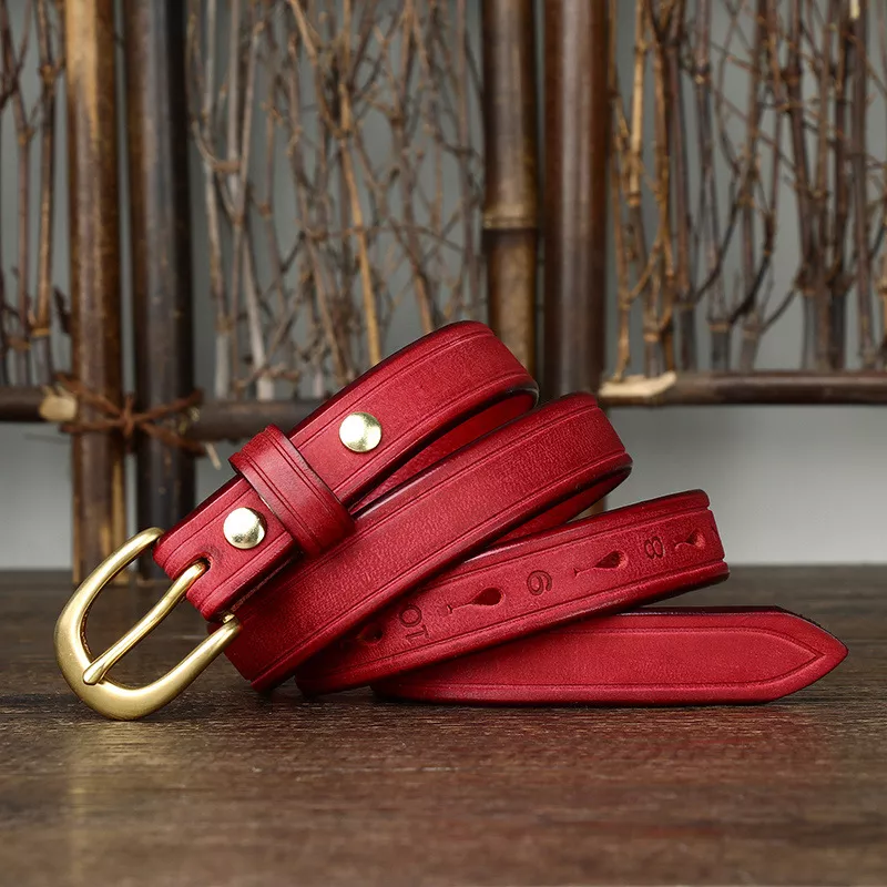 This high-end cowhide belt offers more than just functionality—it’s a statement piece that instantly upgrades any outfit. With its sleek, slim profile and luxurious finish, it’s perfect for women who appreciate understated yet fashionable accessories. The sturdy copper buckle provides not only a practical fit but also a timeless appeal, making it an accessory that complements your style season after season.