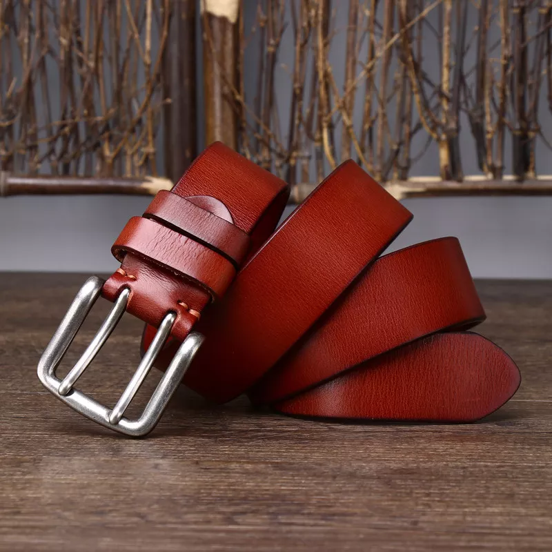 Luxury Genuine Leather Men’s Belt – 3.8cm Double Needle Pin Buckle Designer Cowboy Belt
