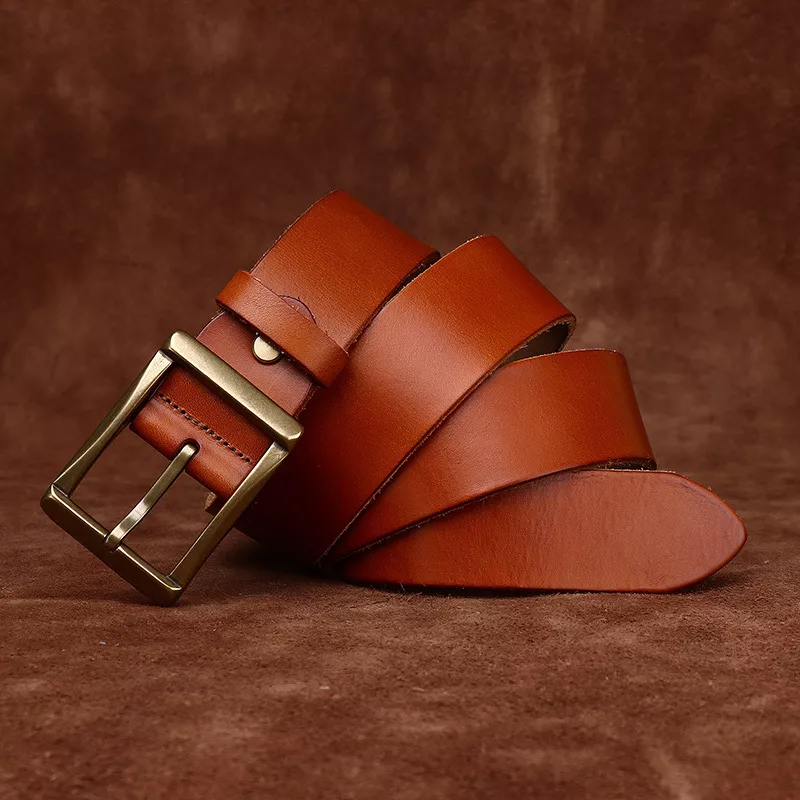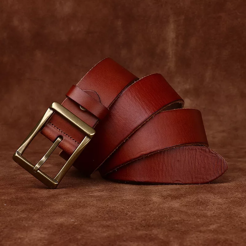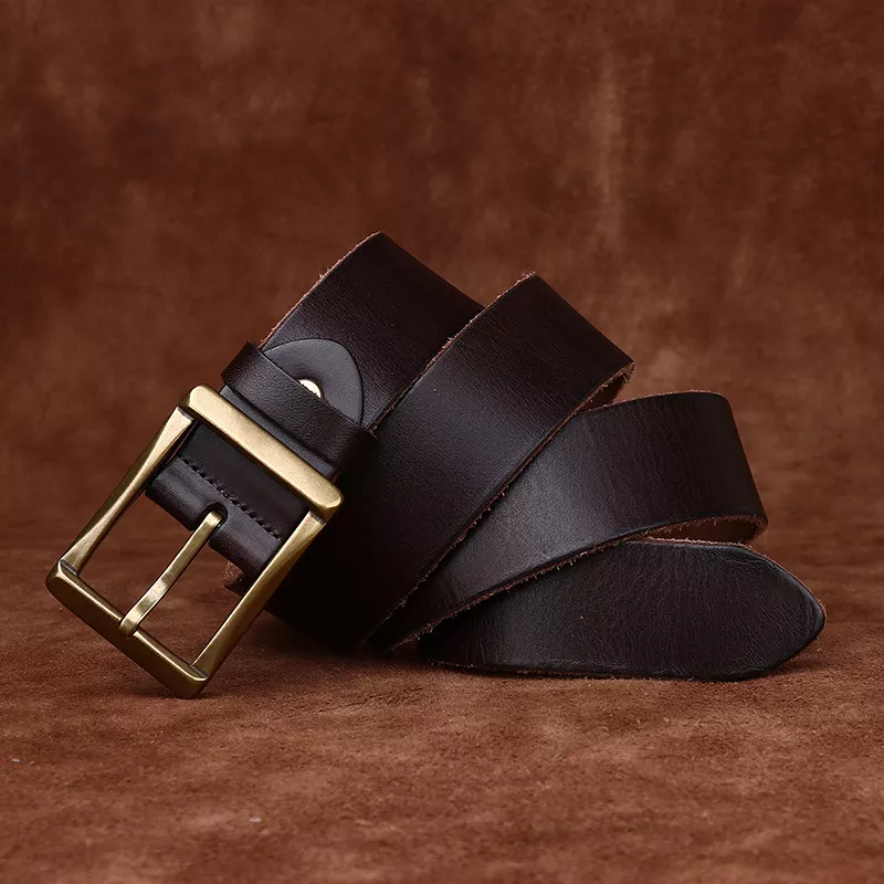 This genuine cowhide leather belt brings timeless durability and simple confidence to every outfit. Designed for men who value strength and style, it features top-grain leather that’s thick, natural, and built to last. Whether you’re pairing it with jeans for a rugged look or adding structure to casual trousers, this belt offers a versatile touch that enhances your daily wardrobe. The solid brass buckle adds a refined retro finish, giving your style character without trying too hard.