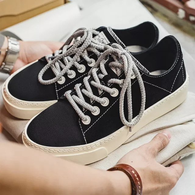 Men’s Black Casual Thick-Soled Canvas Sneakers